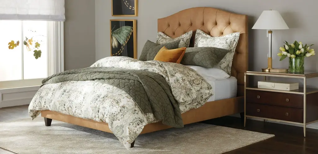 Fully upholstered in genuine leather and featuring a headboard with dramatic curves, our Rania custom leather bed makes a glamorous statement in any bedroom. You choose its size, headboard height, and leather—like invitingly distressed stone or sleek black—then add unique details like buttons and more. Our North American artisans will tailor your bed by hand, just for you.