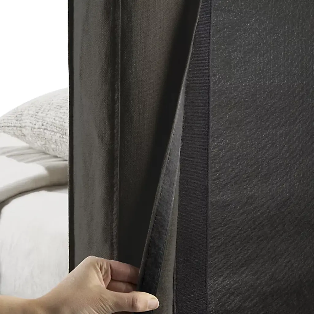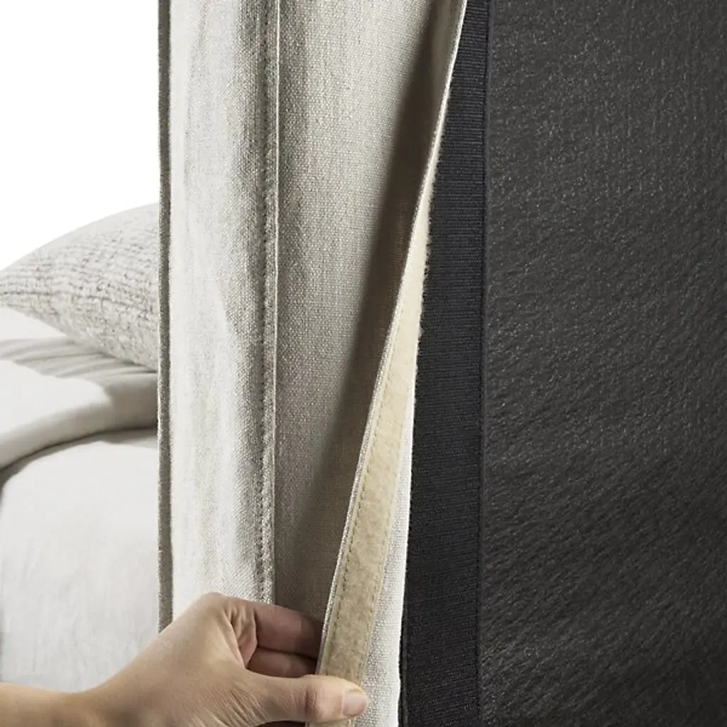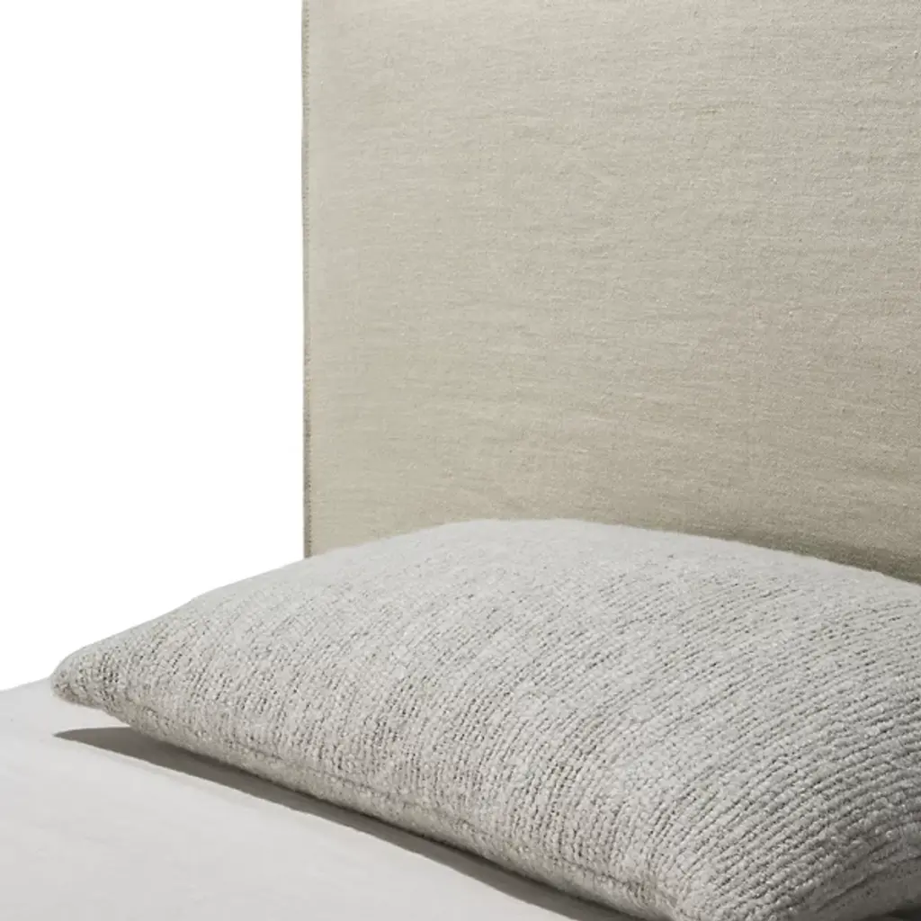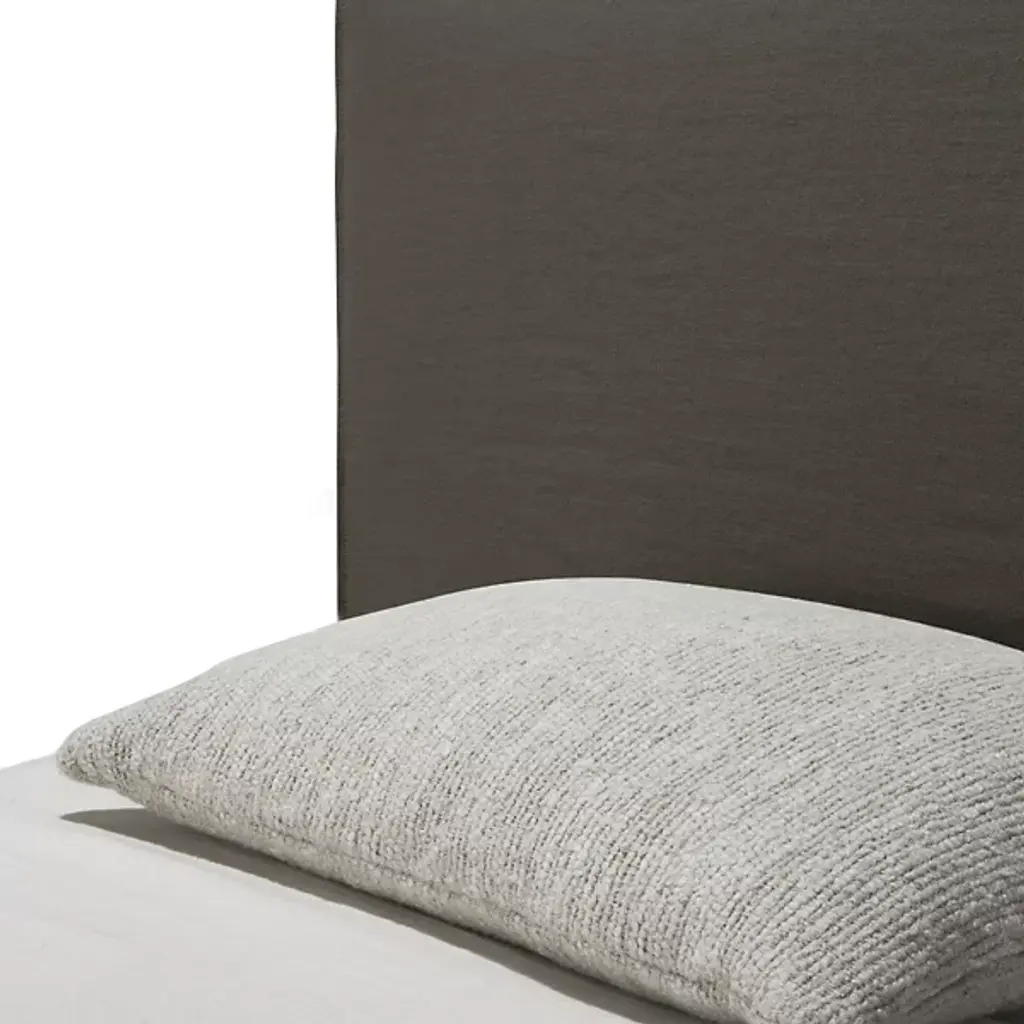 The Revive Bed from Ethnicraft features a linen headboard for comfort and maintenance. The headboard is removable, allowing for dry cleaning to maintain cleanliness. Stitched details on the headboard provide texture and visual interest. Linen, a natural fabric, is known for its durability and breathability. The bed's design incorporates practical elements, such as the removable headboard, with aesthetic considerations. The linen's soft texture aims to contribute to a calming bedroom environment. This bed model combines functional features with design elements focused on comfort and ease of care.