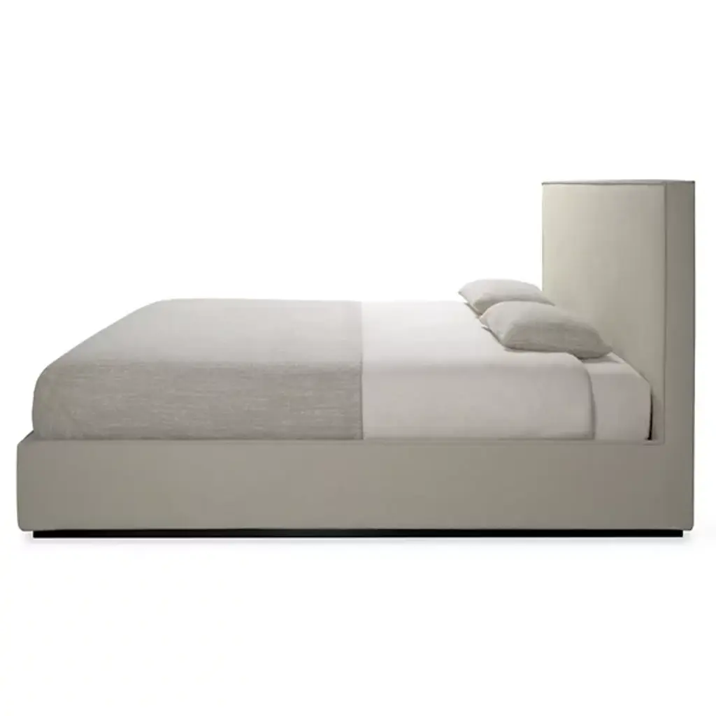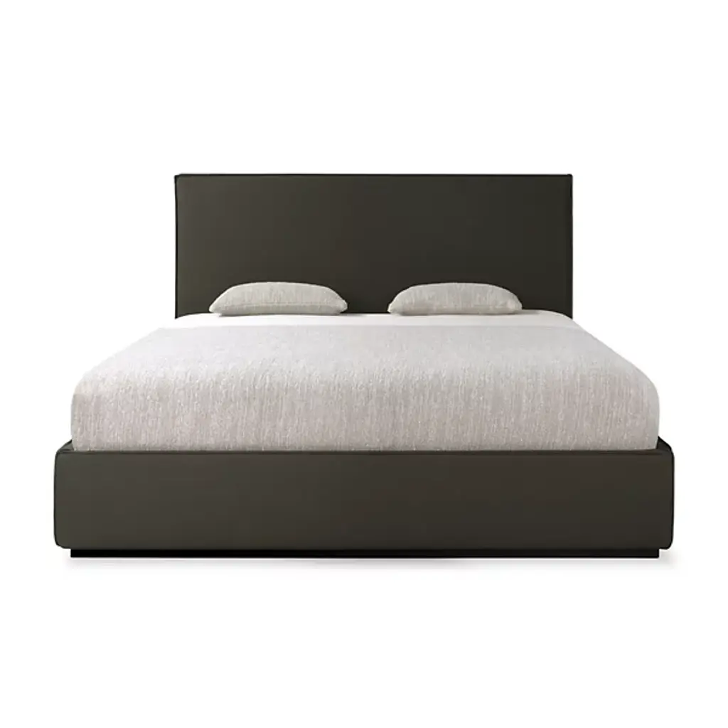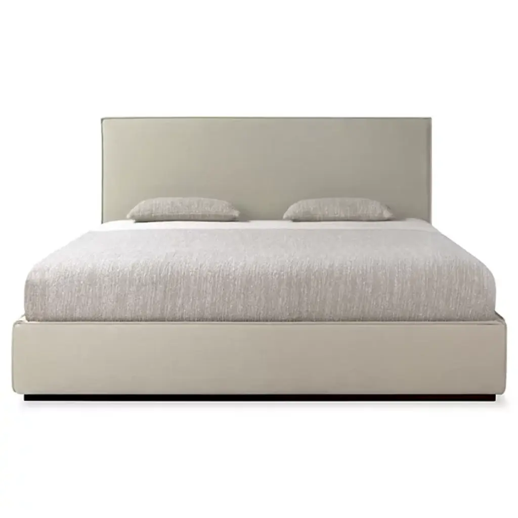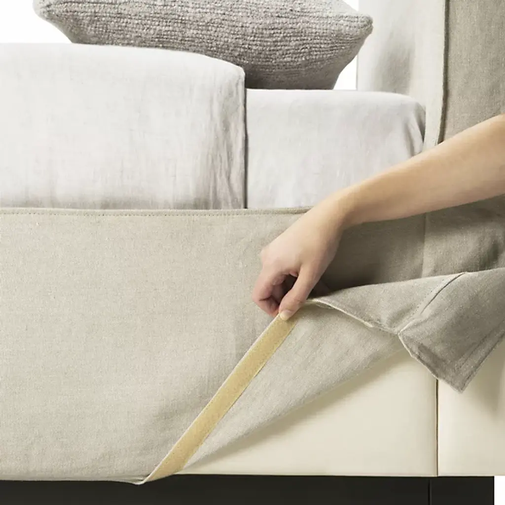 The Revive Bed from Ethnicraft features a linen headboard for comfort and maintenance. The headboard is removable, allowing for dry cleaning to maintain cleanliness. Stitched details on the headboard provide texture and visual interest. Linen, a natural fabric, is known for its durability and breathability. The bed's design incorporates practical elements, such as the removable headboard, with aesthetic considerations. The linen's soft texture aims to contribute to a calming bedroom environment. This bed model combines functional features with design elements focused on comfort and ease of care.
