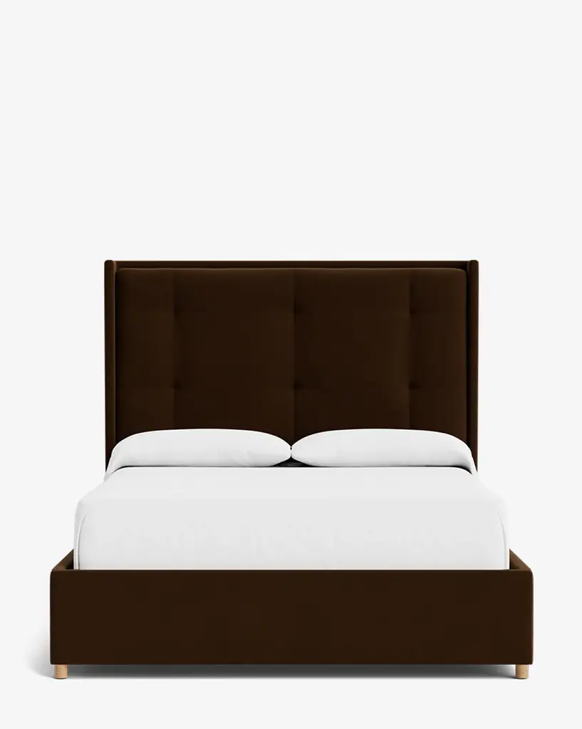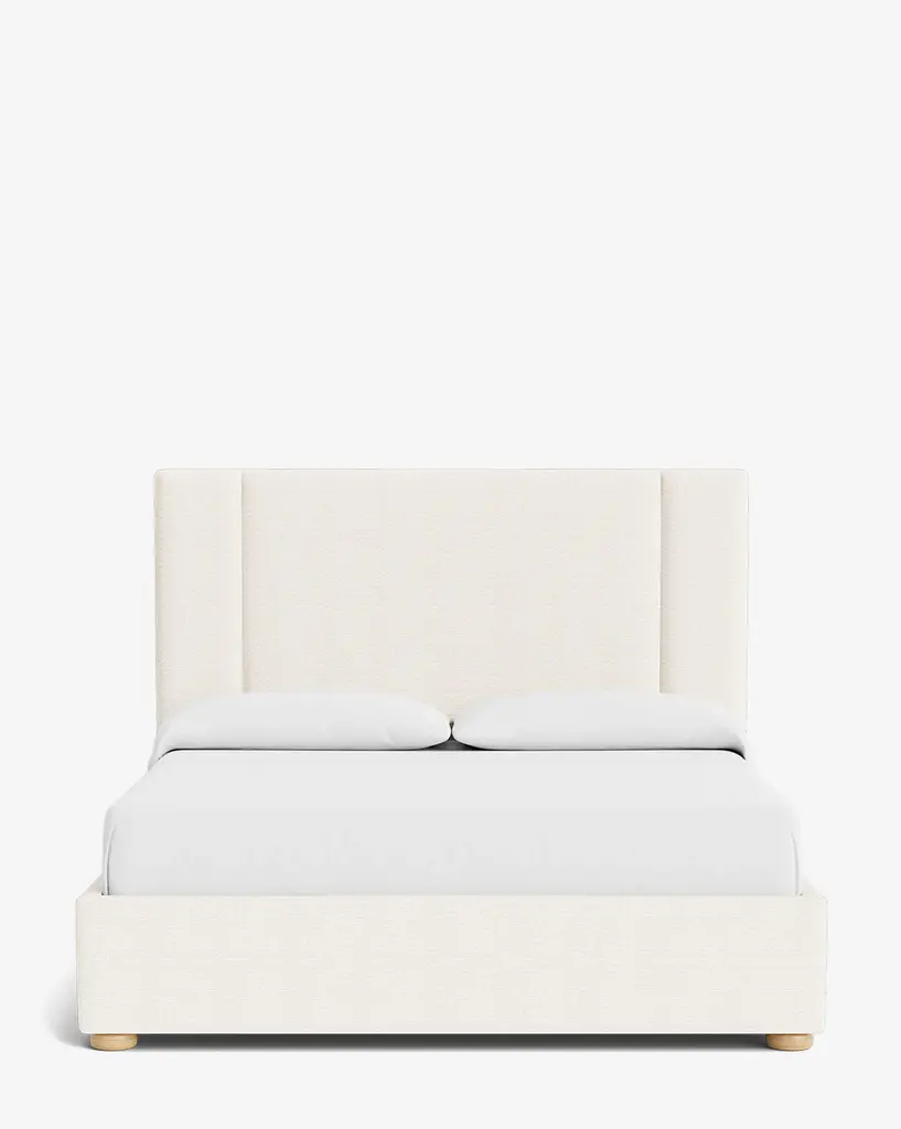 With a bench-made frame, the Ria Upholstered Bed is customizable in a selection of our favorite high-quality fabrics. The tufted headboard brings both simplicity and elegance to bedroom designs in each of the colorways. With a low frame and subtle wood block feet, this upholstered bed elevates your bedroom style with its detail and refinement.