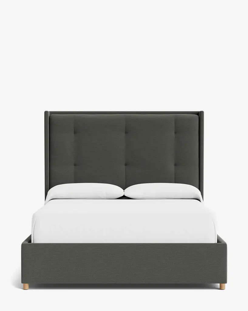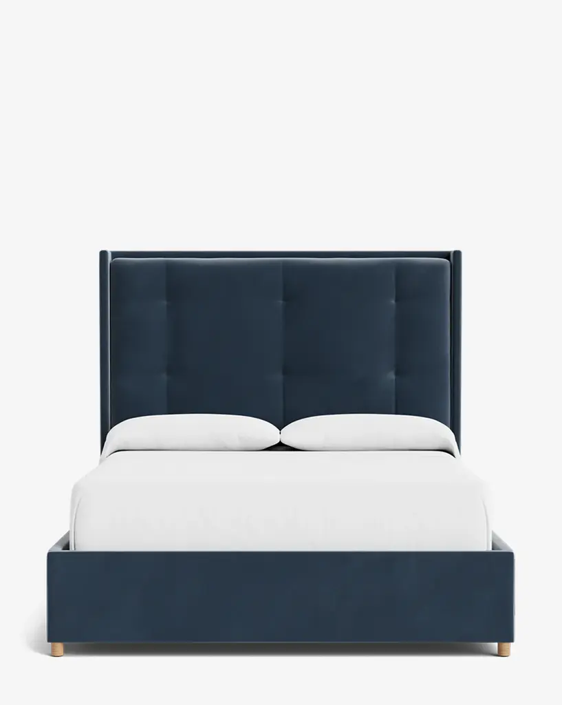With a bench-made frame, the Ria Upholstered Bed is customizable in a selection of our favorite high-quality fabrics. The tufted headboard brings both simplicity and elegance to bedroom designs in each of the colorways. With a low frame and subtle wood block feet, this upholstered bed elevates your bedroom style with its detail and refinement.