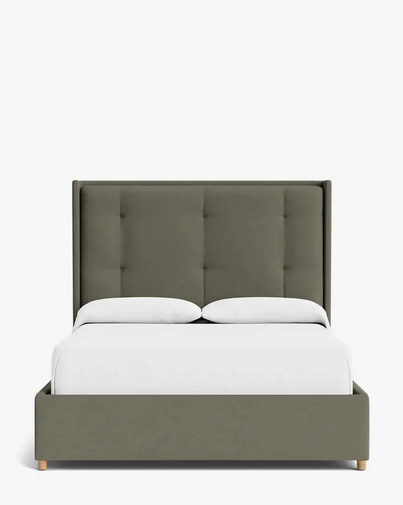 With a bench-made frame, the Ria Upholstered Bed is customizable in a selection of our favorite high-quality fabrics. The tufted headboard brings both simplicity and elegance to bedroom designs in each of the colorways. With a low frame and subtle wood block feet, this upholstered bed elevates your bedroom style with its detail and refinement.