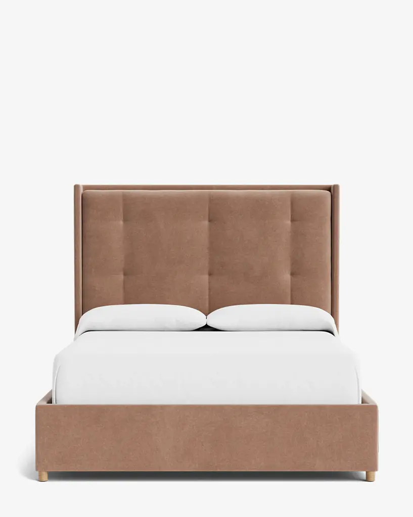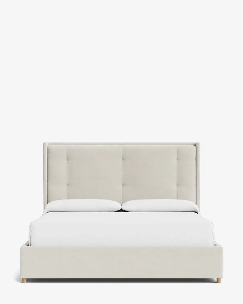 With a bench-made frame, the Ria Upholstered Bed is customizable in a selection of our favorite high-quality fabrics. The tufted headboard brings both simplicity and elegance to bedroom designs in each of the colorways. With a low frame and subtle wood block feet, this upholstered bed elevates your bedroom style with its detail and refinement.