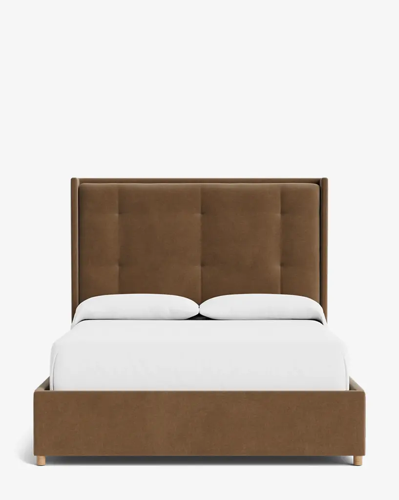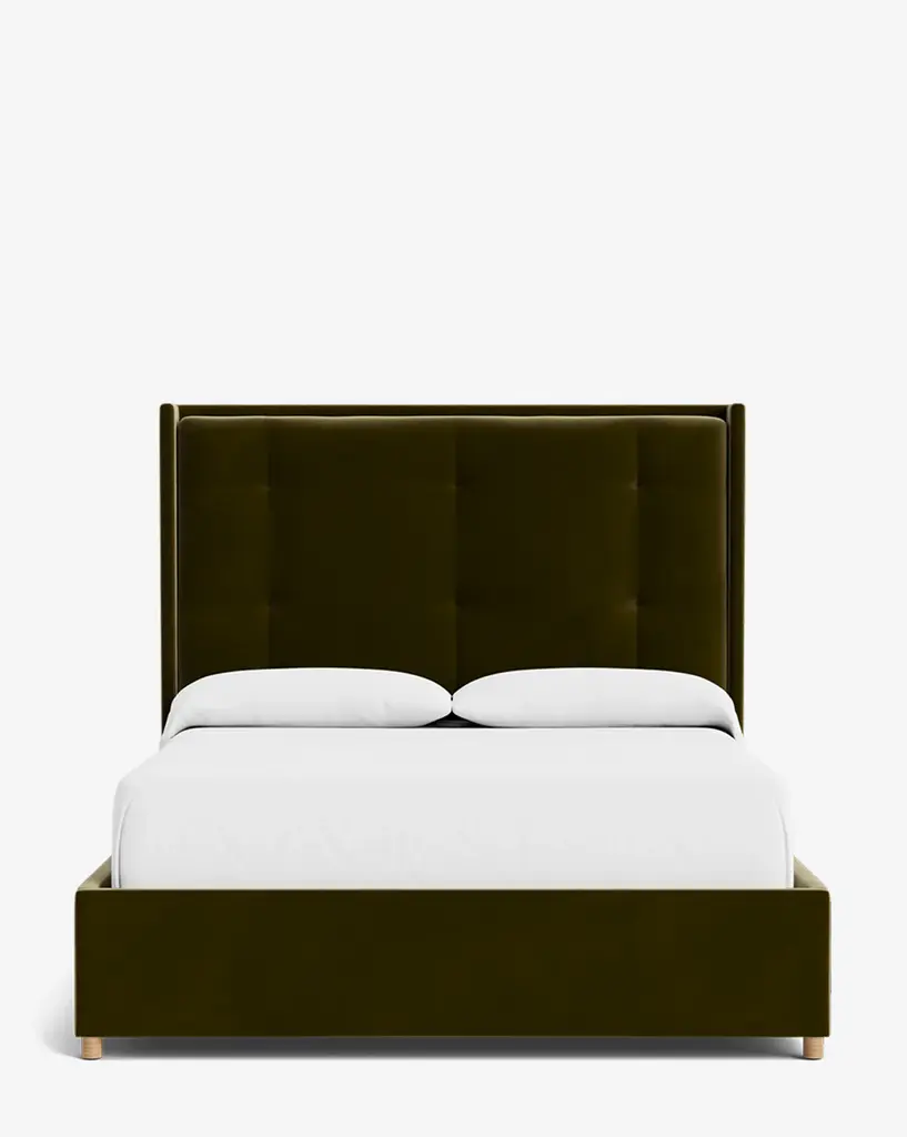 With a bench-made frame, the Ria Upholstered Bed is customizable in a selection of our favorite high-quality fabrics. The tufted headboard brings both simplicity and elegance to bedroom designs in each of the colorways. With a low frame and subtle wood block feet, this upholstered bed elevates your bedroom style with its detail and refinement.