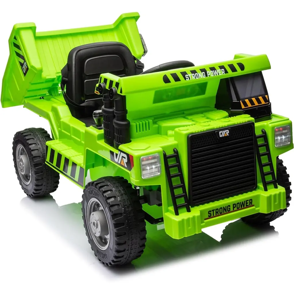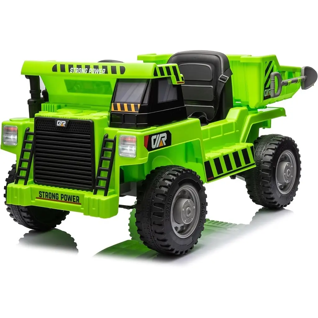 Ride On Dump Truck,12v Ride On Construction Vehicle With Parents Control,electric Dump Bed And Extra Shovel,phone Stand - Green