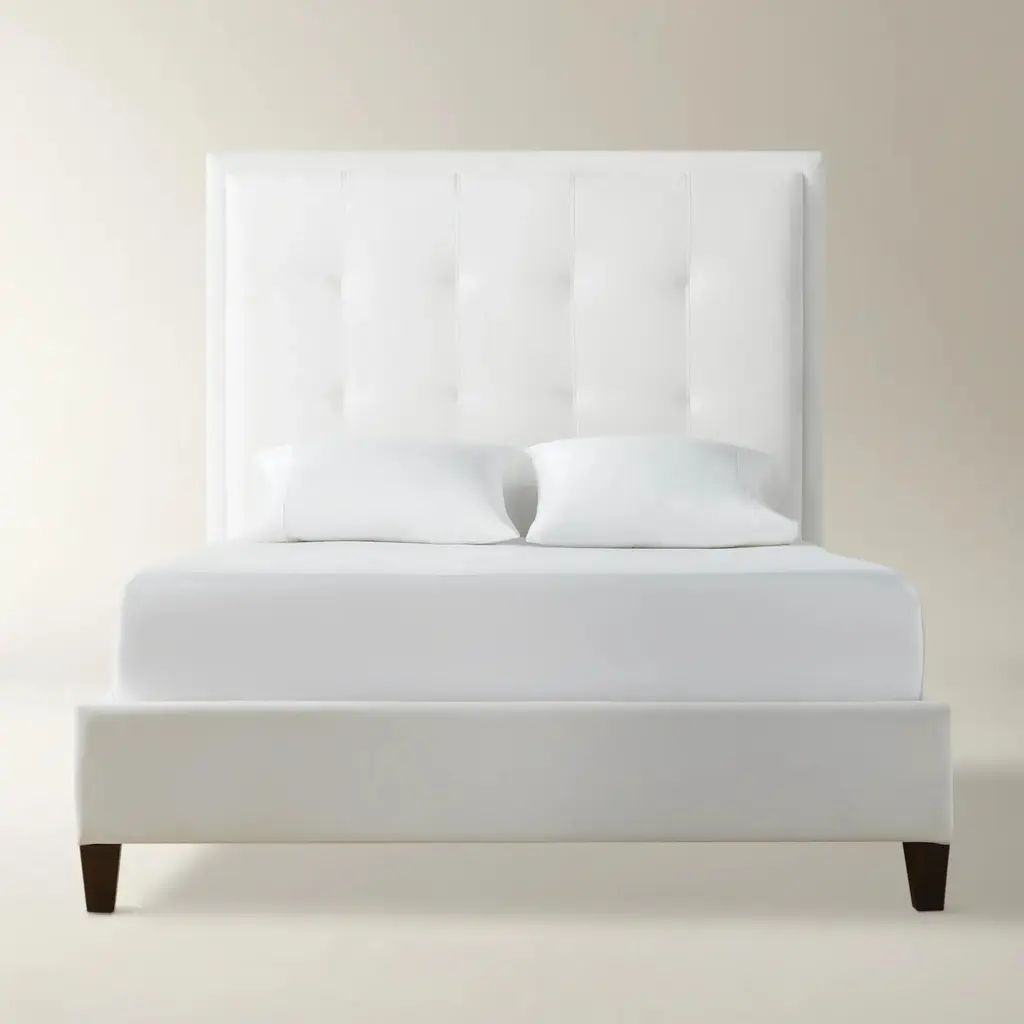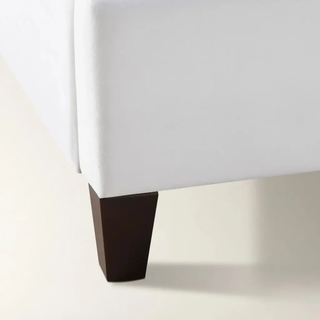 Classic styling meets a modern line. Riley brings gracious charm to any bedroom with a bright, crisp frame resting on contrasting legs. Shown in Bella Velvet White.Kiln dried hardwood Foam padding Corner blockedAssembly RequiredExclusive to Z GallerieCustom Orders: Custom Furniture is manufactured especially for you, which is why we do not accept cancellations, exchanges, or returns.