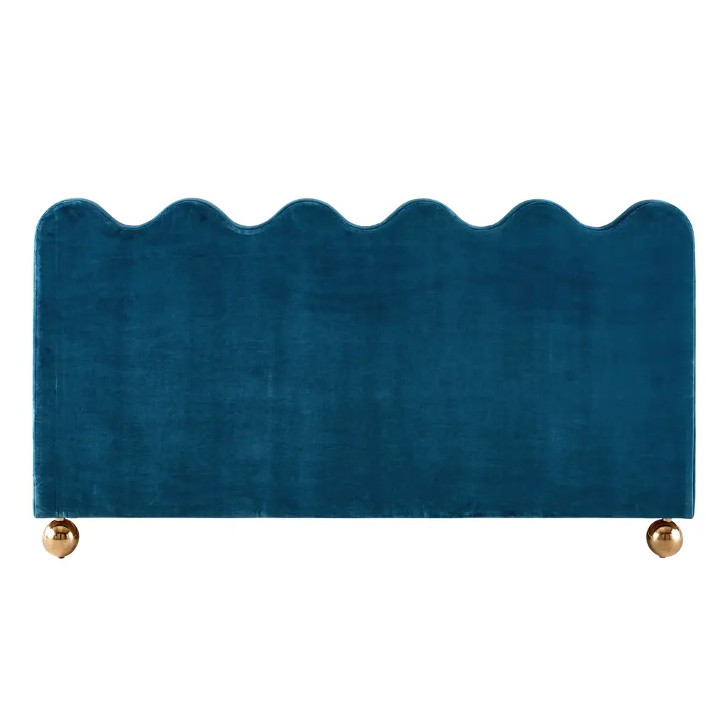 Make Waves. Chic and simple, our Ripple Bed features a brilliant wave of jewel-toned blue with a slight sheen—just the edge for a modern boudoir. A smooth velvet finish and bold, oversized brass orb feet at the base bring the perfect amount of glamour to the mix. This is the spot in your sanctuary that proves sweet and stylish dreams can come true. *Our shipping ETAs may be longer than usual, but safely delivering the looks you love is always our priority.