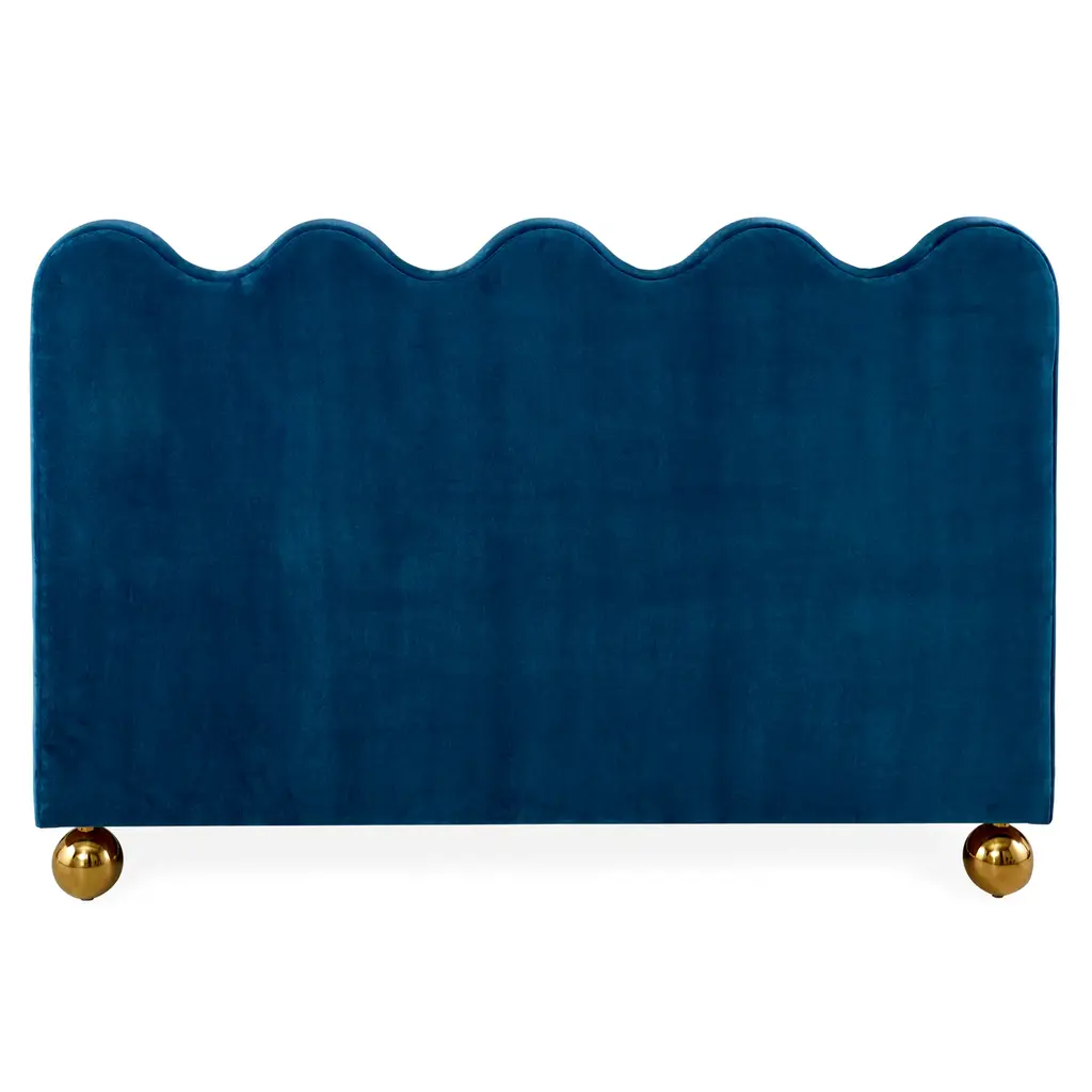 Make Waves. Chic and simple, our Ripple Bed features a brilliant wave of jewel-toned blue with a slight sheen—just the edge for a modern boudoir. A smooth velvet finish and bold, oversized brass orb feet at the base bring the perfect amount of glamour to the mix. This is the spot in your sanctuary that proves sweet and stylish dreams can come true. *Our shipping ETAs may be longer than usual, but safely delivering the looks you love is always our priority.