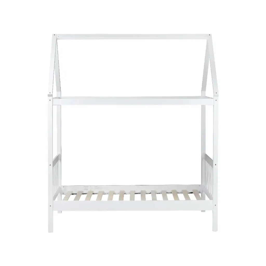 Risokeys Twin Size Bed Frame With Headboard And Footboard, Low Rubberwood House Bed For Boys And Girls,no Box Spring Needed,white