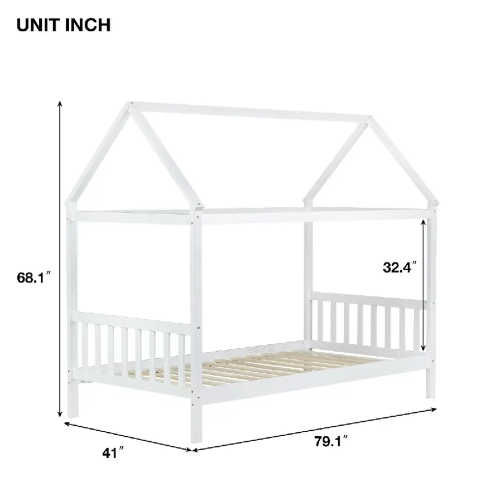 The charming roof structure of this unique wooden house-shaped Montessori bed adds a touch of natural and rustic wood flavor to your child's bedroom. The house bed roof is suitable for hanging decorations and accessories, which helps cultivate your child's hands-on skills and imagination. This twin house bed is the best choice for you.This platform house bed provides ample under-bed clearance, allowing for plenty of space to store books, magazines, gadgets, or small boxes. It helps keep the room clean and tidy while offering quick and convenient access to your belongings.The elegance of this house bed is reflected in its refined and minimalist structural design, making it suitable for all interiors and allowing it to blend seamlessly into any setting.