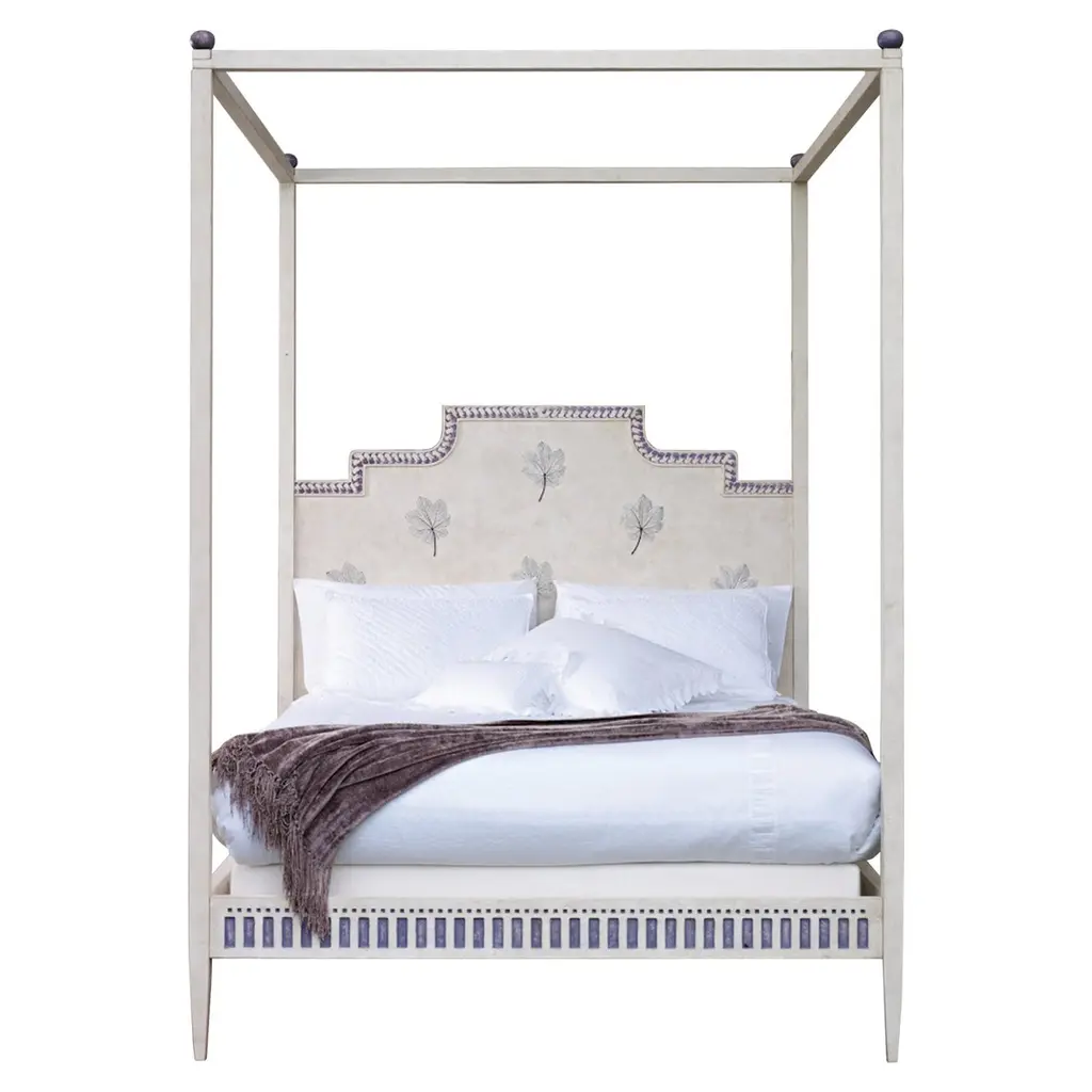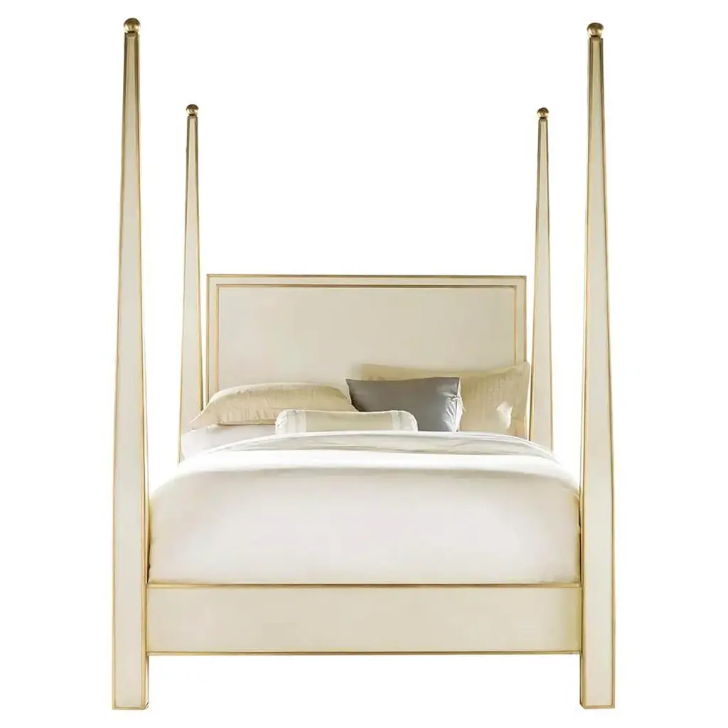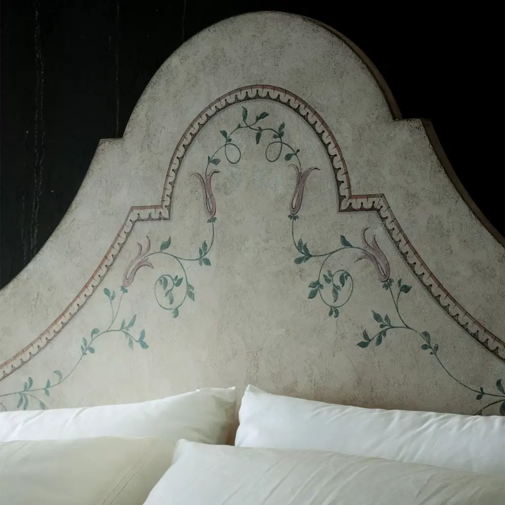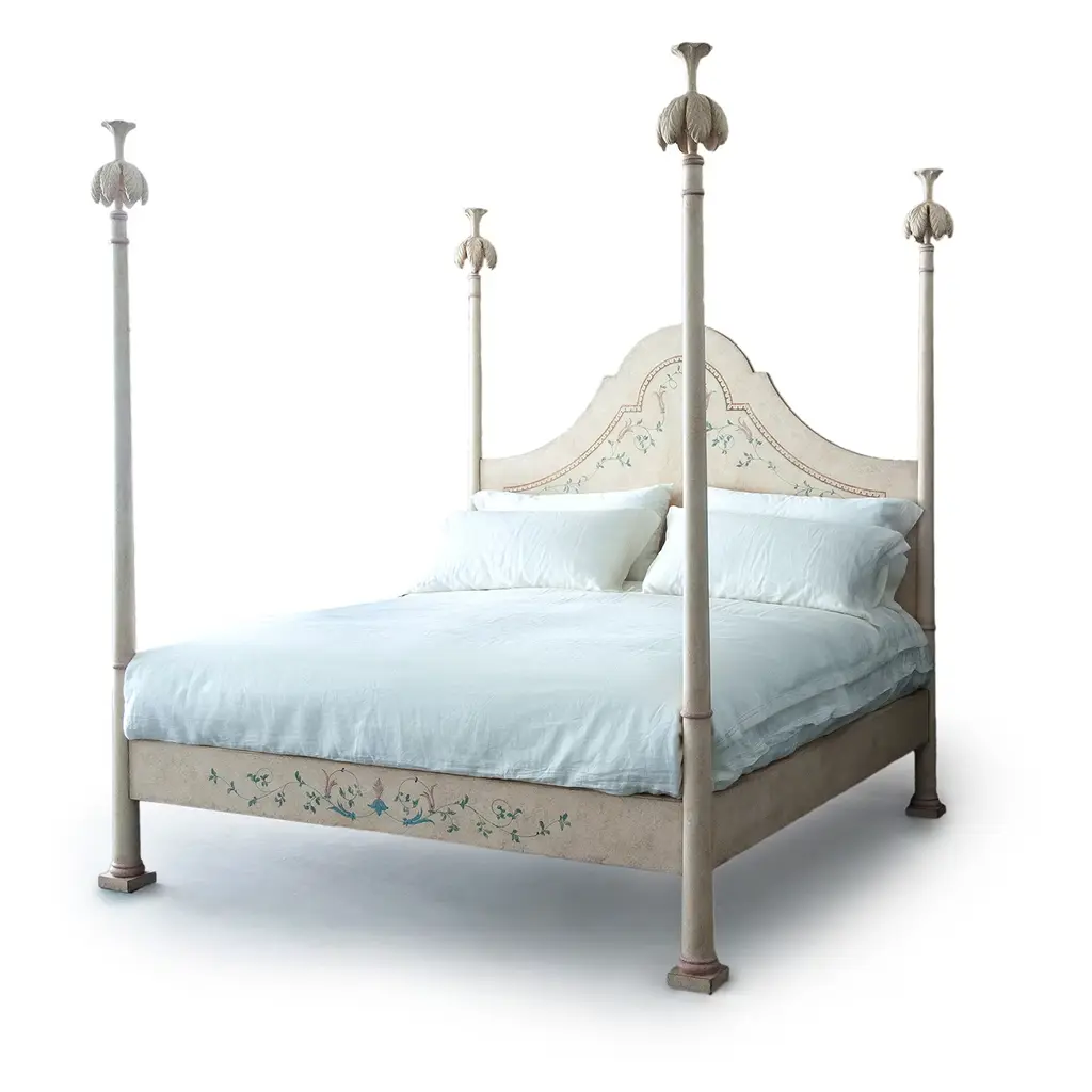 Presenting the stunning Roma Bed, a symbol of romance and enduring beauty. This hand-painted four-poster bed in ivory, adorned with elegant framings and delicate rosettes, is designed to make a timeless statement. Crafted with love and built to last, it offers customization options for size and design, allowing to create of a perfect sanctuary. Bed base and mattress are not included. Please, ask the Concierge service for further information.