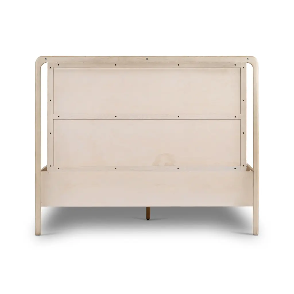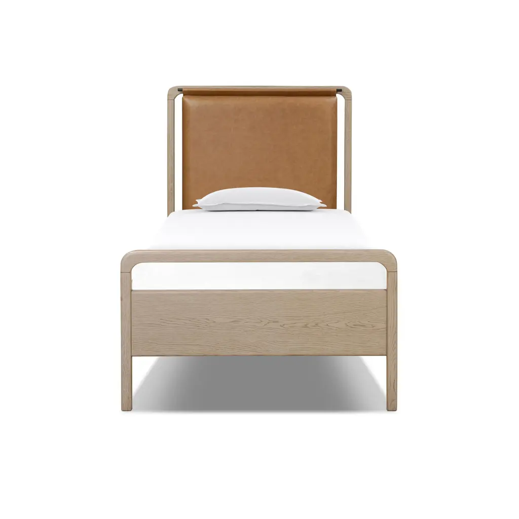 Experience beauty in simplicity with the Rosedale Bed from Four Hands. Crafted from washed oak and top-grain leather, its modern material mix offers a visually light and clean style; while its tightly upholstered headboard and softly rounded legs exude sophistication and elegance. Solid and durable, this distinctive bed will slowly reveal its character with time, becoming a timeless piece of furniture to cherish. Highlights