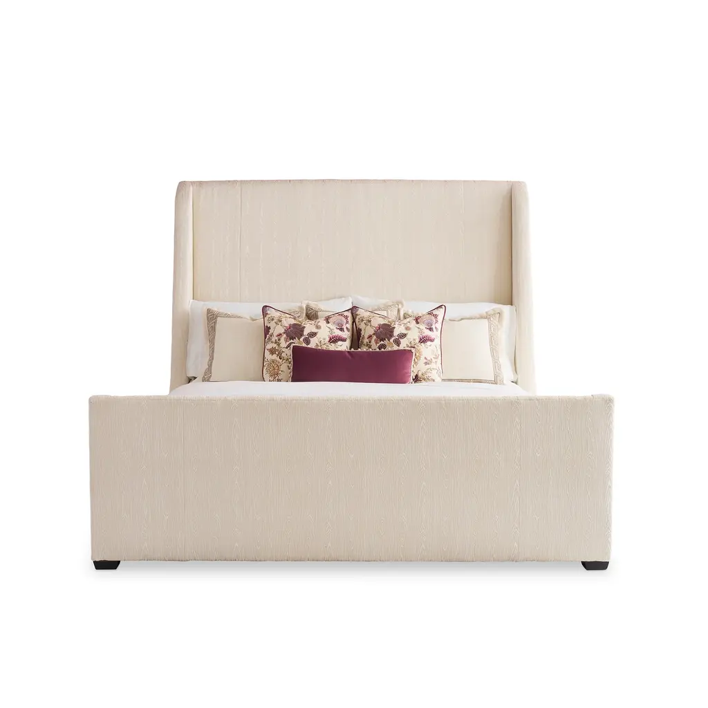 Contemporary and cozy, the Row Bed is available in both Queen and King sizes, and can be upholstered in your choice of fabric. The extra tall headboard is a true statement for any sleeping space, and the all-around upholstery and slight curve to the edges provides a welcoming space to drift off to sleep. Recommended for use with a box spring. Ships In 8-10 Weeks Box spring not included Fully upholstered As Shown Fabric: Perch Cream As Shown Finish: Modern Elm If you choose to purchase COM, once you have placed your order a customer service rep will contact you regarding where to send your fabric. Please note that current lead time is 17-19 weeks once your fabric arrives at the factory, and if unused fabric is under 1.5 yards, it cannot be sent back to you.This product can be special ordered in additional fabrics, leathers, finishes, and cushion fillings. Click here to email us for for additional information about special ordering.This image is for illustrative purposes only. The colors shown are accurate within the constraints of lighting, photography, and the color accuracy of your screen.