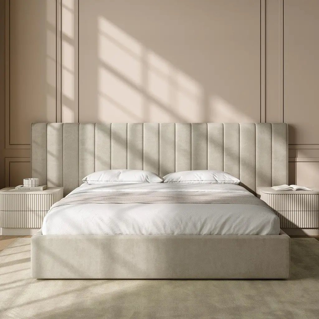Rune King Bed Beige Velvet