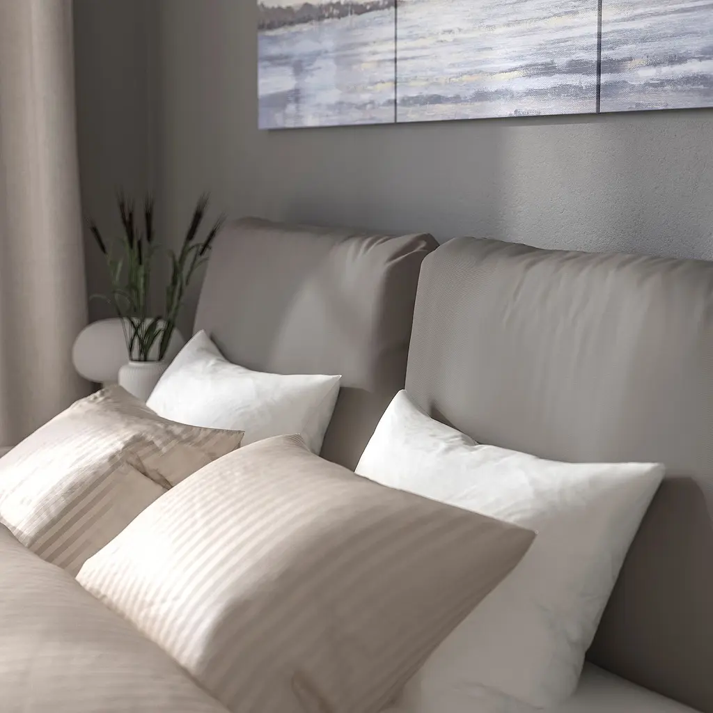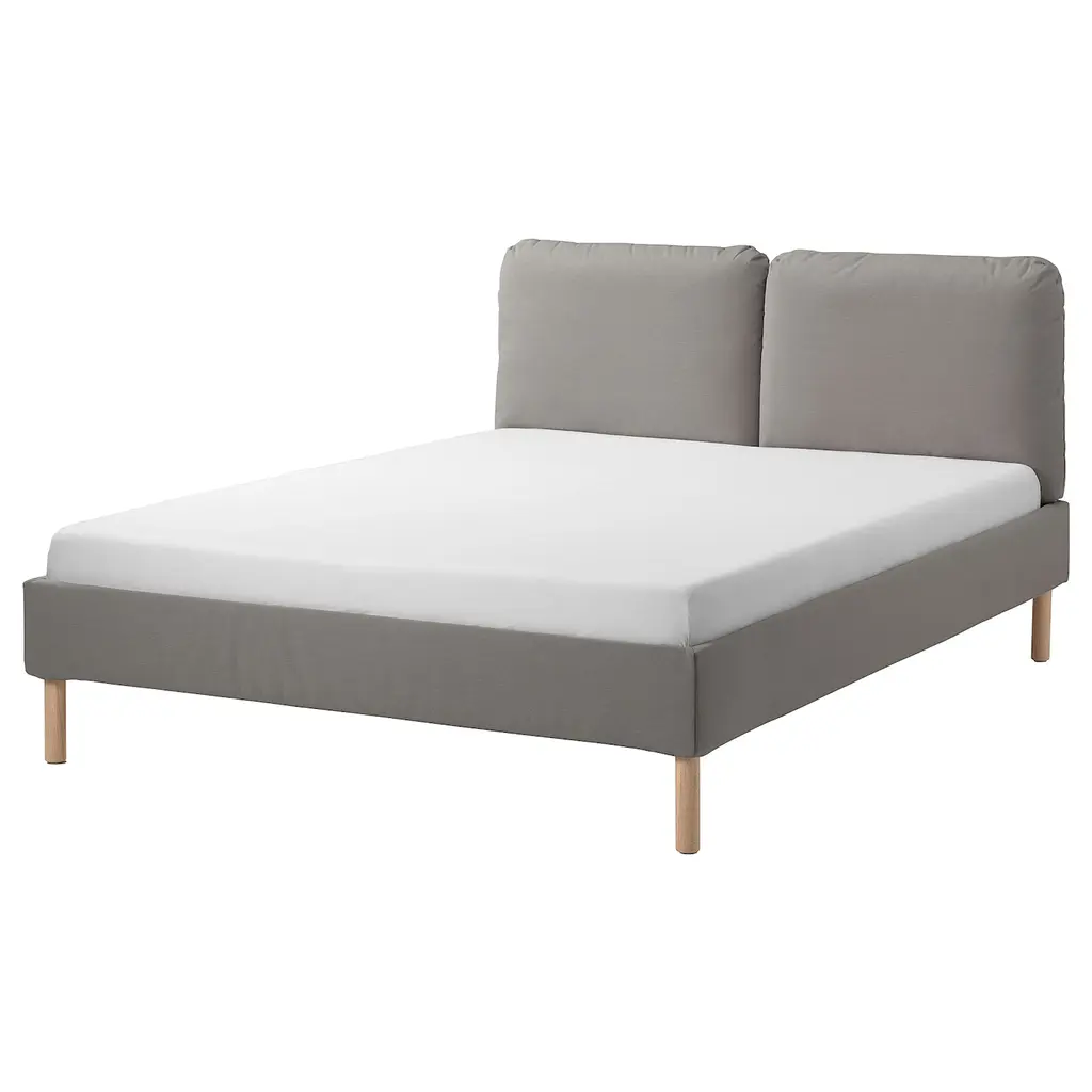 SAGESUND Upholstered bed frame - Diseröd brown/Luröy King. SAGESUND is a soft, comfortable and functional bed frame that adds a modern and inviting expression to your bedroom. The cover is made of Diseröd fabric that is soft to touch and makes bedtime even cozier. Center support beam included.