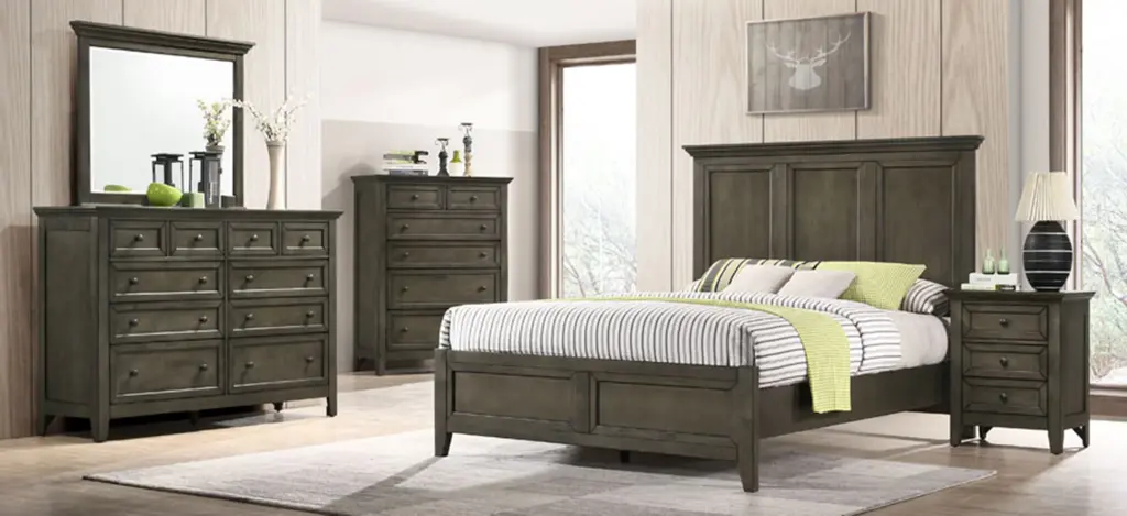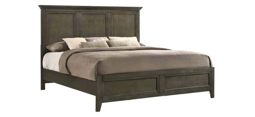 San Mateo King Bed is Solid wood bedroom suite available in three classic finish colors - Tuscan, Rustic White, and Gray. Storage and standard bed rails in queen and king sizes plus four case piece options give plenty of room for organization. A gorgeous bedroom set that will last in function and style.