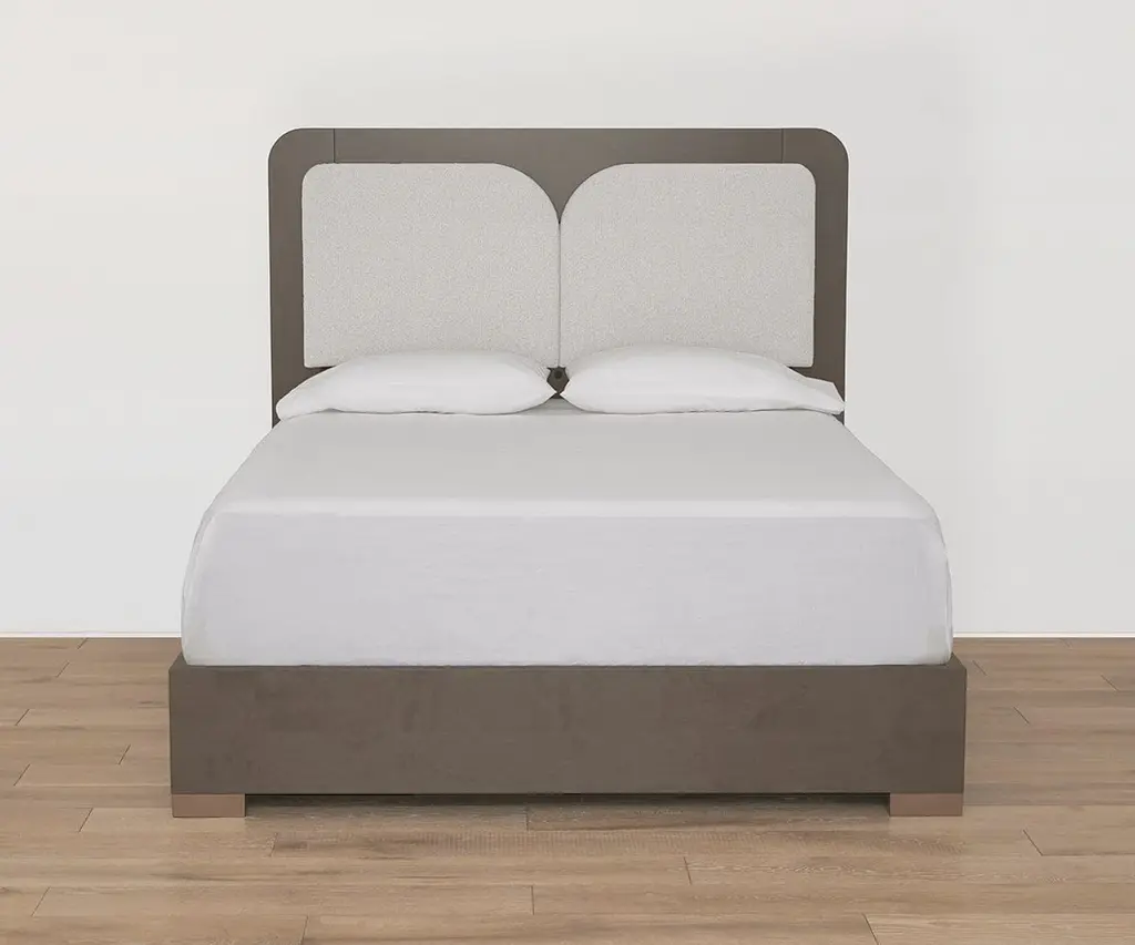 Elegant inlays and softly rounded edges give the Sancia Bed a distinct, contemporary style, beautifully anchored by a warm brown finish. A cushioned, upholstered headboard adds comfort and flair to the sophisticated aesthetic, which is designed to complement a variety of decor styles. Pair it with other pieces in the Sancia Collection for a coordinated look.