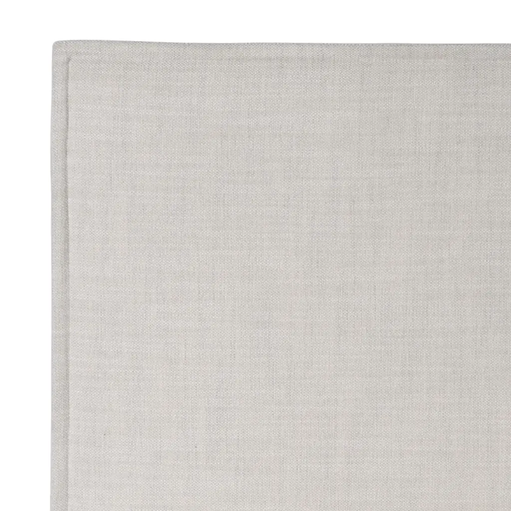 With clean lines and minimal ornamentation, the Sawyer bed offers a sophisticated style with a laid-back cool. The fully upholstered bed is covered in muslin and wrapped in textural fabric with a soft neutral shade for a soothing, organic look. Stitched flanged edges and wood feet in a morel finish add subtle nuances to this stylish but understated piece.