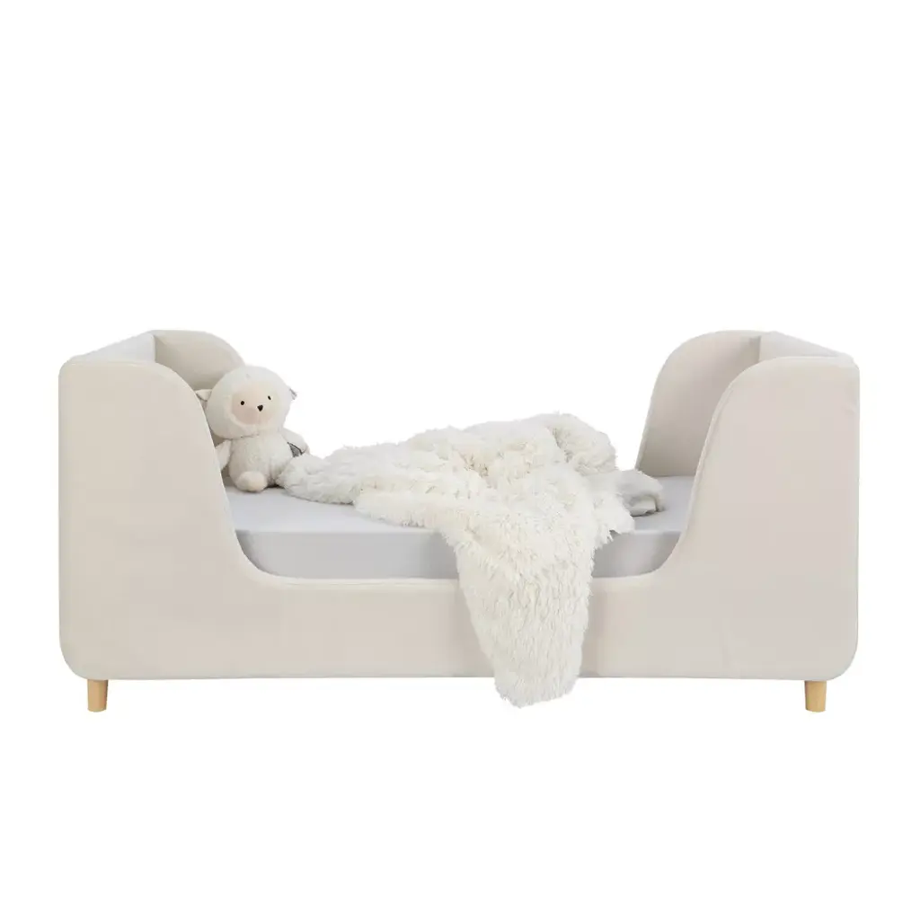 Stylish, modern and sleek, the daybed is a perfect place for your child to spend their nights. The soft velvet fabric rounded corners make the Bodhi a safe option for any day. It's the perfect finale to your bedtime routine or use one in your playroom for comfy seating and nap time. The Bodhi fits a standard sized crib mattress with no box spring required. This daybed uses a standard size crib mattress.