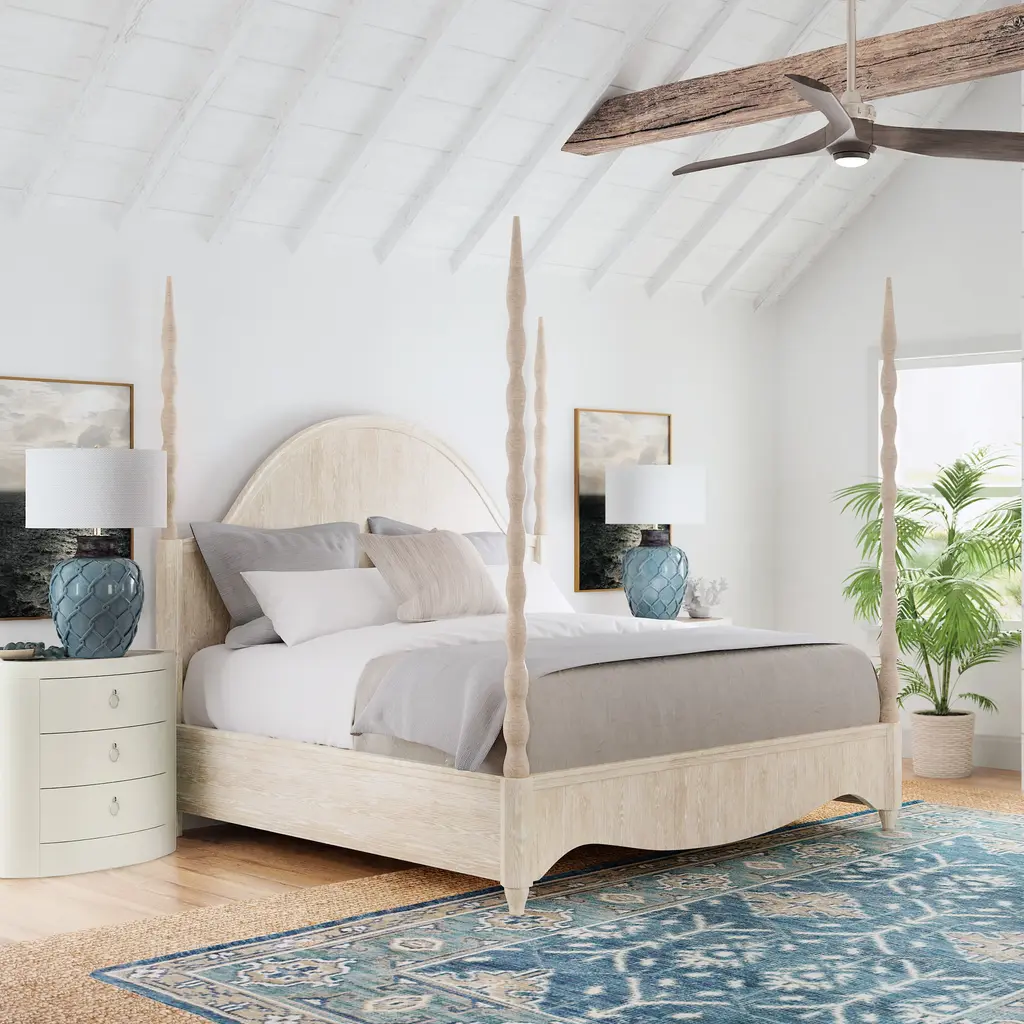 Transform your bedroom into a serene seaside escape with the Serenity Jetty Poster Bed from Hooker Furniture. Crafted with Oak Veneers in a whitewashed Surf finish, and accented with rope-wrapped posts, this bed brings the relaxed aura of waterfront living into your home. Create a comfortable and inviting retreat with the versatile headboard, amble to be used alone should the mood strike. Highlights