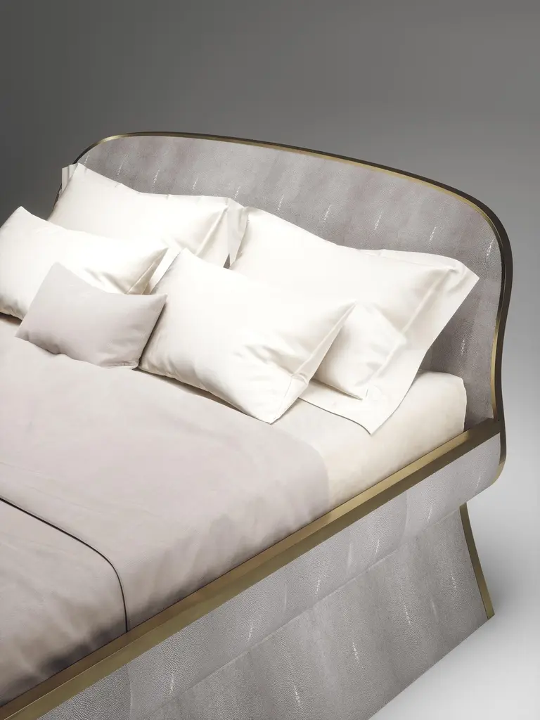 Shagreen Bed Frame With Bronze-Patina Brass Details By Kifu Paris
