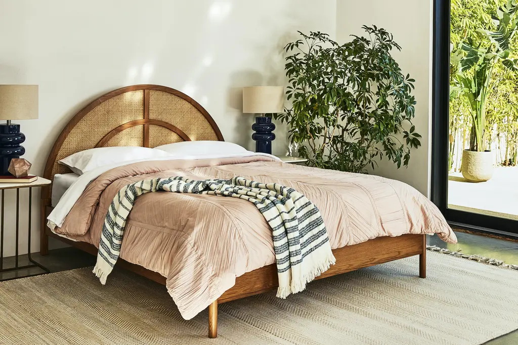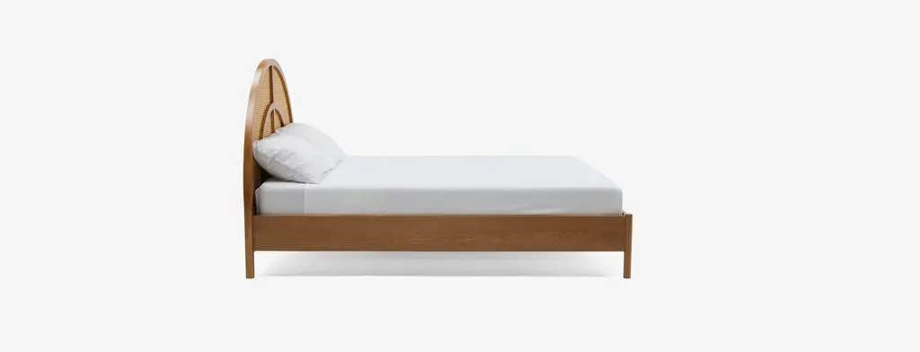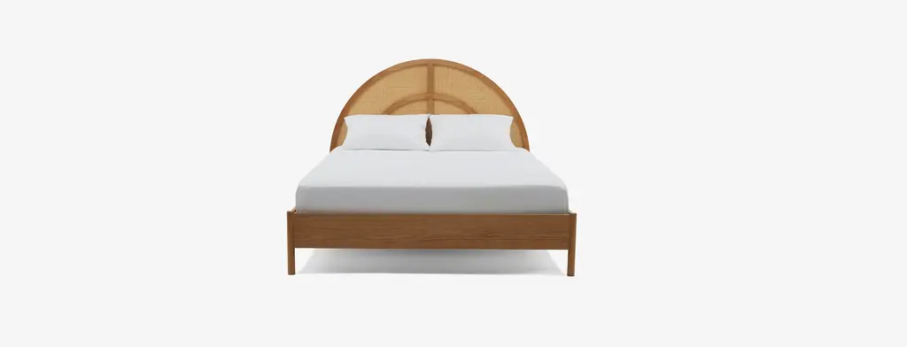 Giving a whole new meaning to beauty rest, the Sienna Bed showcases a show stopping semi-circle headboard decked out in oak and rattan. Perfectly combining modern and mid-century modern styles, the Sienna is perfect for those who love retro inspired pieces with a contemporary feel.