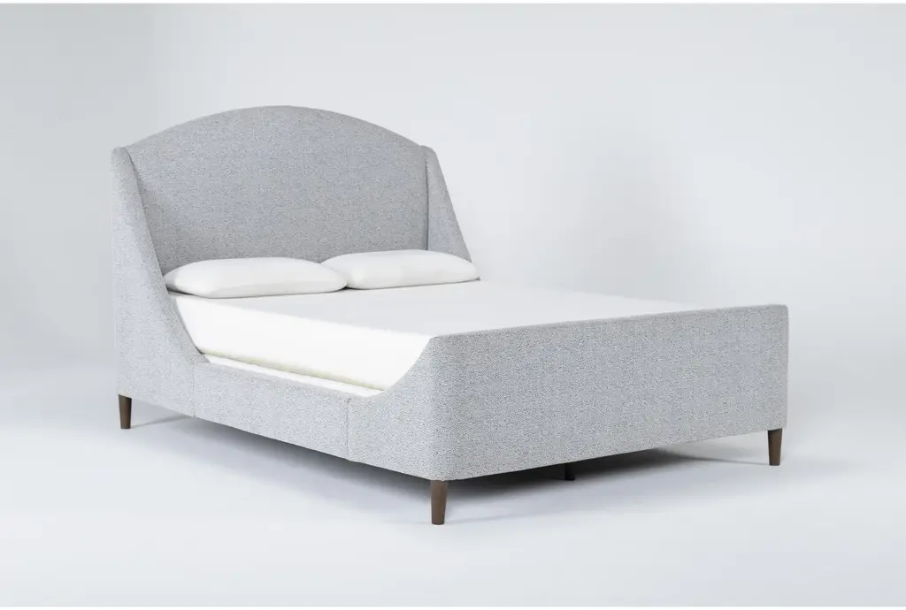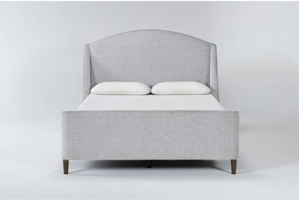 Sienna Grey California King Upholstered Wingback Shelter Bed With High Footboard