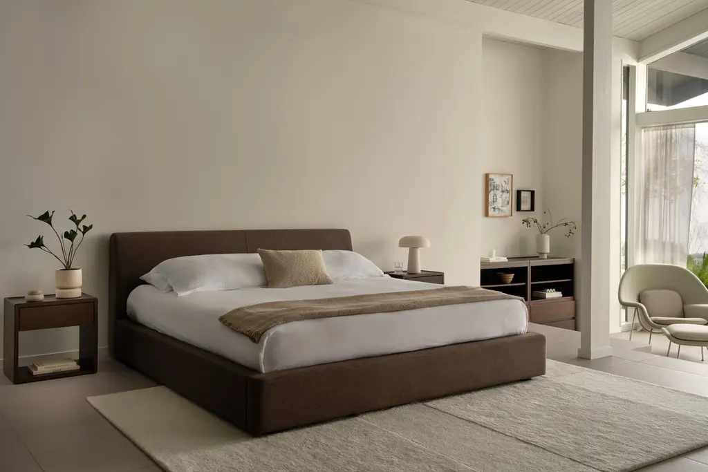 The Signature Bed brings plush sophistication and enveloping comfort to the modern bedroom with a streamlined silhouette, generous design, and premium fabrications. Interior Japanese joinery crafted from solid wood for exceptional sturdiness. Upholstery options specially selected for their inviting textures, sustainable properties, and proven longevity. Mattress sold separately.