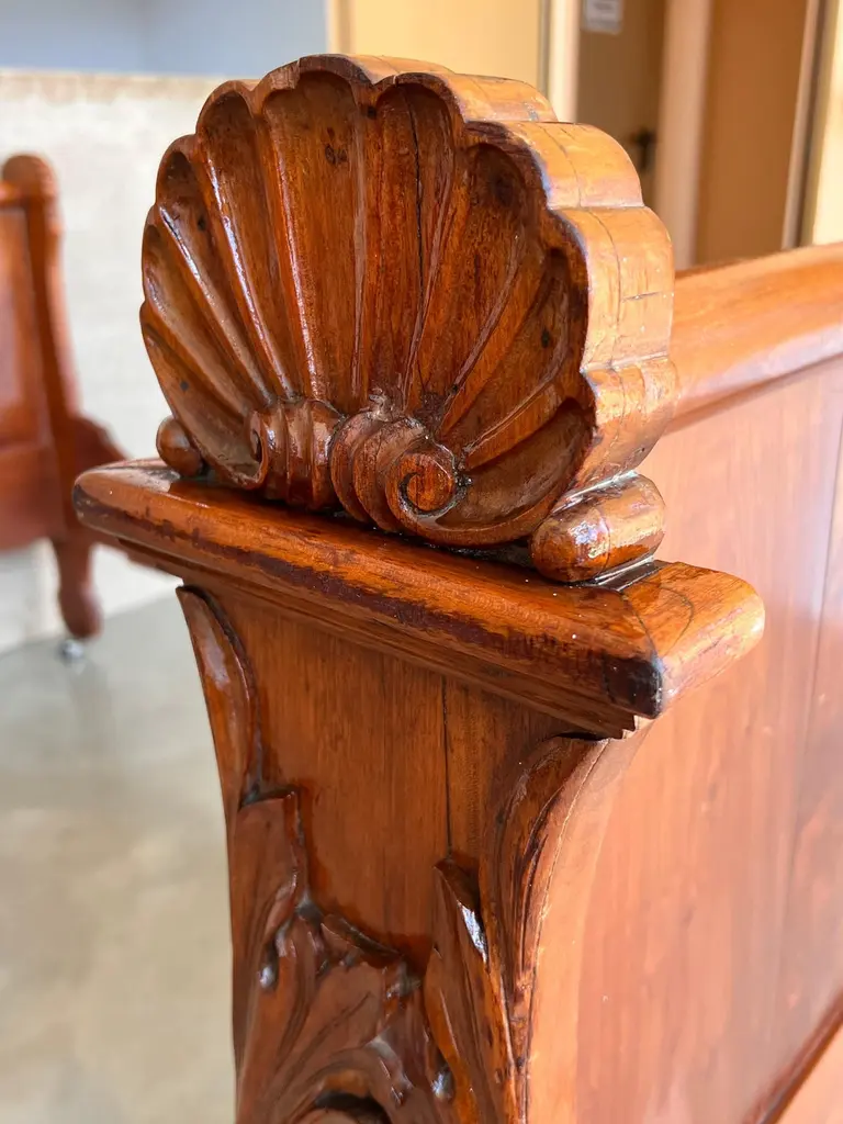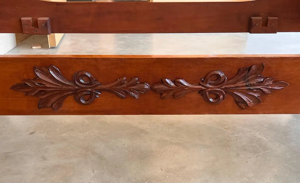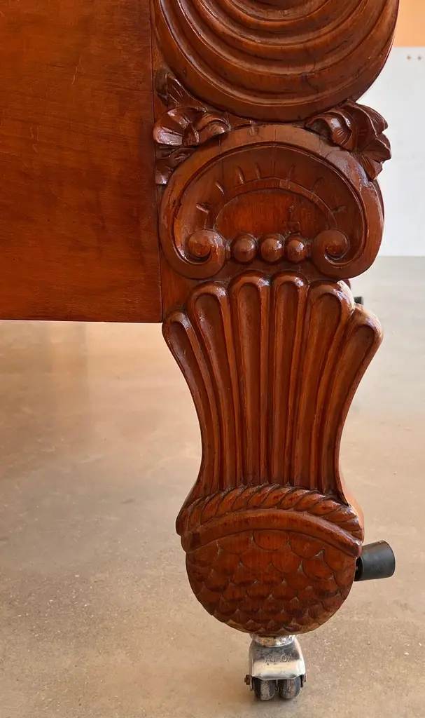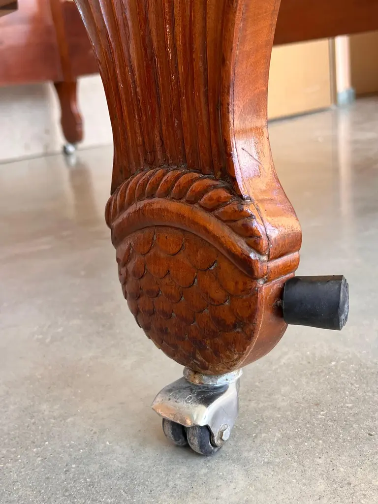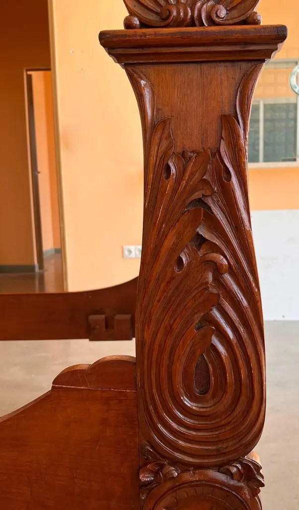 Beautiful boat bed in carved mahogany Louis Philippe period. Its small dimensions allow it to be used also as a bench. The four legs are equipped with casters, which allows him to move easily. Mattress: Full Doble 42 " x 75".