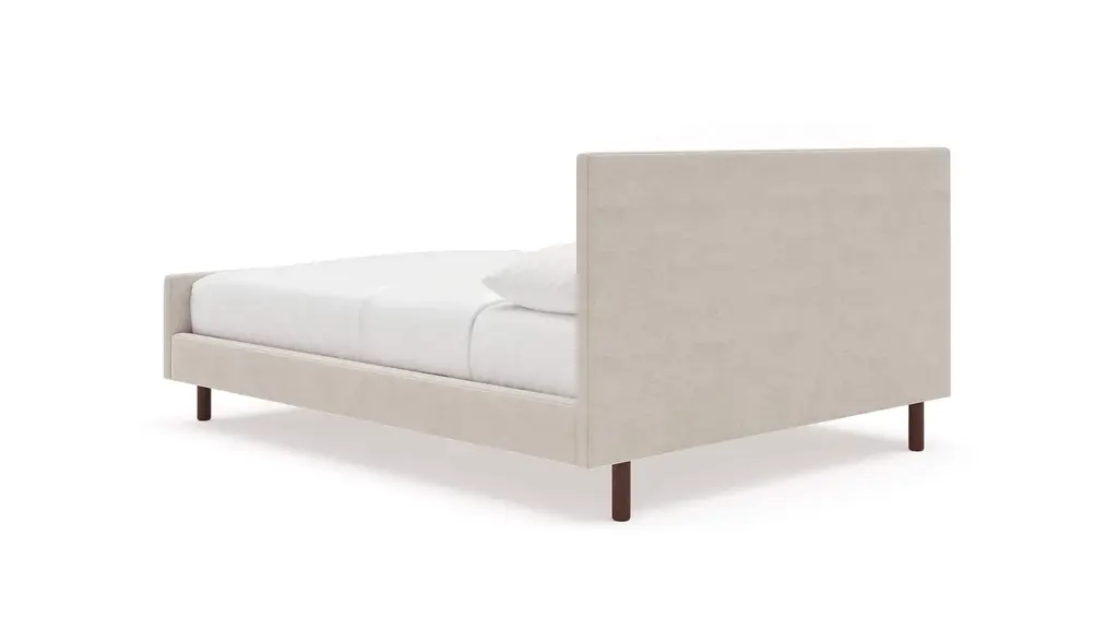 DESIGN Streamlining a classic modern bed with customizable options, the Skinny Fat bed offers minimalist appeal without sacrificing style. The original and versatile design easily fits into any space. Available in twin to cal king. Handcrafted in the USA. Designed for a mattress only; box spring not recommended. FEATURES Made-to-Order: Each piece is custom-made, so it's easy to create a space that's uniquely yours. Fully Padded Hardwood Frame: Crafted for resilience & comfort. Wooden Slats: Eliminate the need for a box spring or foundation. Customizable Upholstery: Choose from a vast selection of durable premium and performance fabrics and genuine Italian leather to personalize your bed's look.