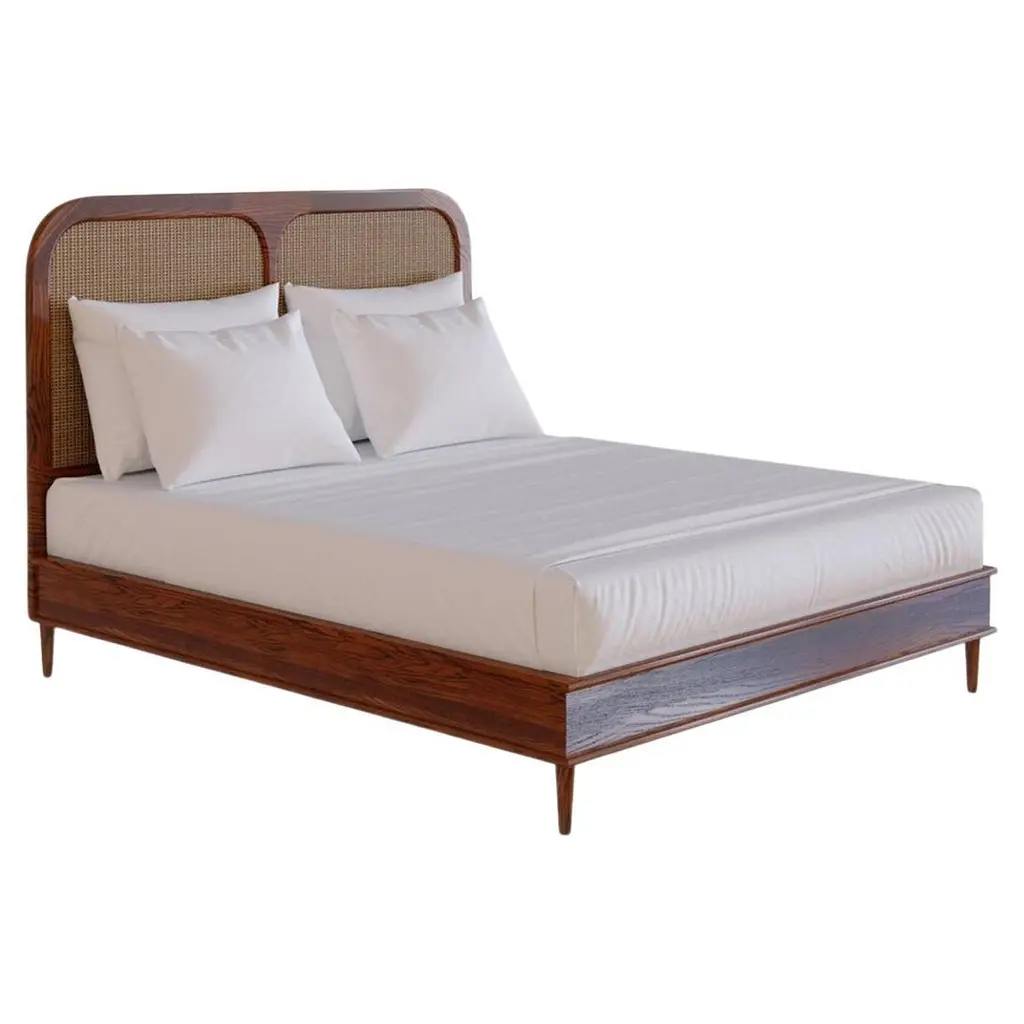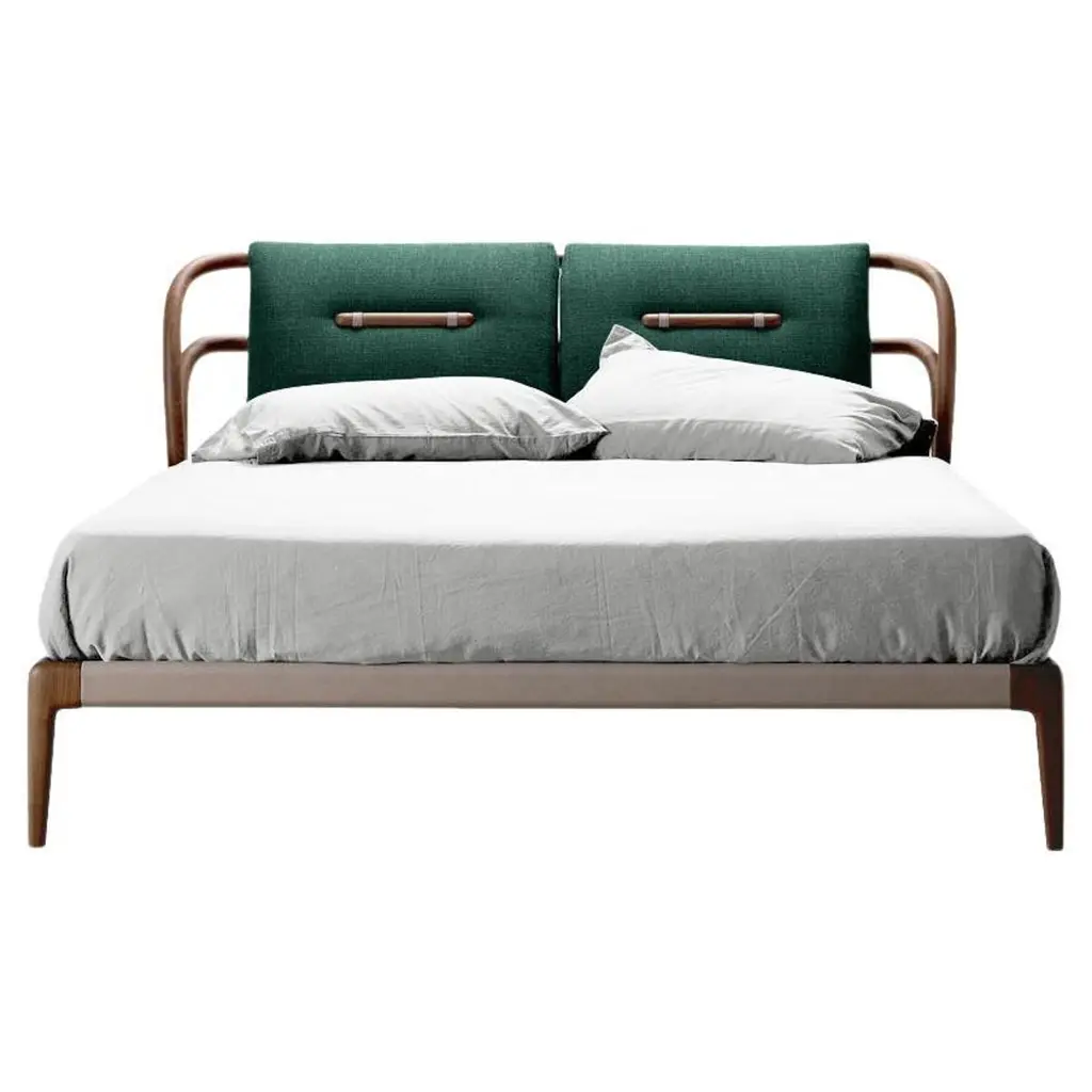 Smusso Solid Wood Bed, Walnut In Hand-Made Natural Grey Finish, Contemporary