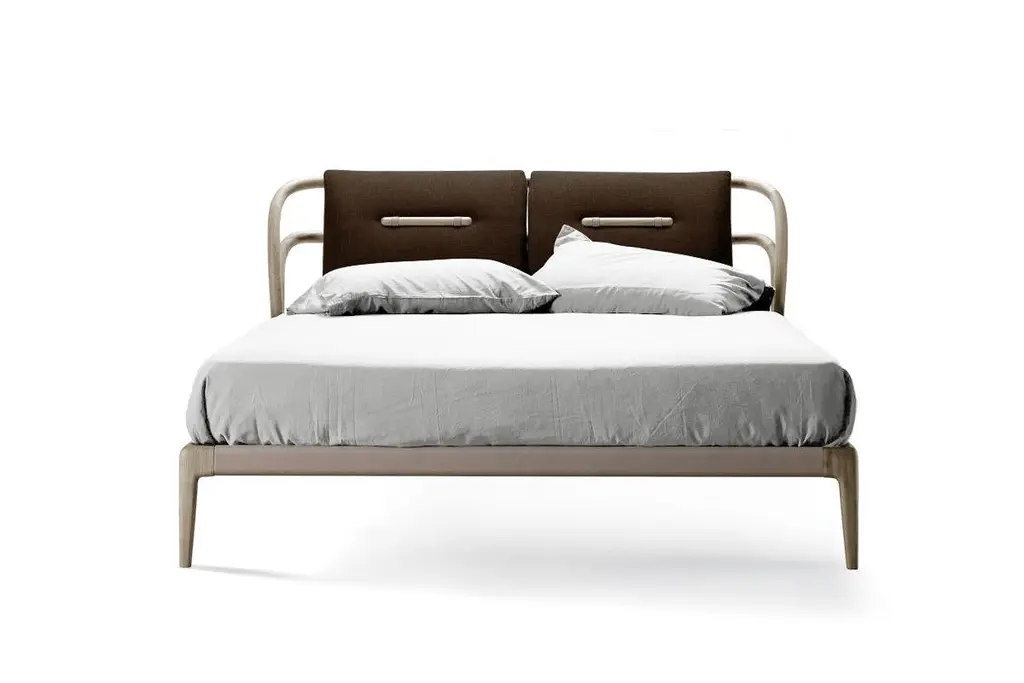 The Smusso solid wood bed in canaletto walnut is a piece of high quality craftsmanship designed to complete elegantly any bedroom. Finished by hand in every detail, it stands out with its fine woodwork. The soft padding transforms Smusso into an inviting and welcoming surface.