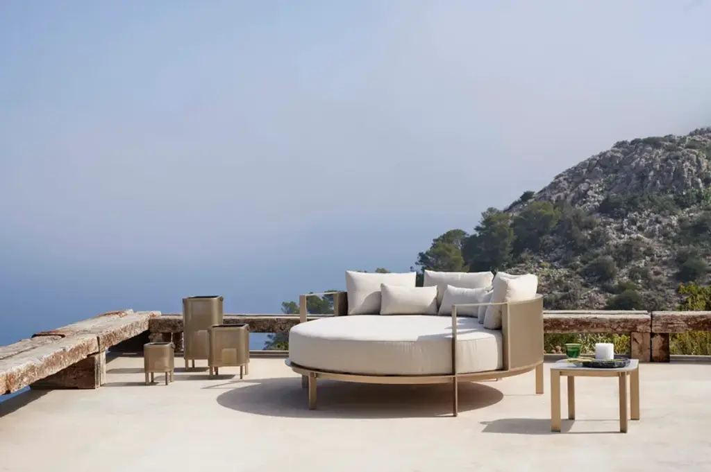 SOLANAS is the new GANDIABLASCO collection born from the aesthetic sensibility and passion for the outdoors of Argentinean architect and designer Daniel Germani. Its an homage to SOLANAS, a beach located in Uruguay, where Daniel Germani used to spend his summers. A paradise with never-ending sunsets and beaches that disappear into the horizon. He also pays homage to his father, a man who was always ready to open the doors of his home to friends and family. Just as talented a chef as a host, this engineer by training with an extraordinary aesthetic sensibility designed the outside space of his house in Solanas to accommodate his numerous guests and for the enjoyment of his three passions: nature, family and gastronomy..Made of thermo-lacquered welded aluminium profiles.Porcelain.Polyurethane foam rubber covered with water-repellent fabric. Removable fabric cover.Collections colour sample: white, agate grey, cement grey, bottle green, gold, sand, bronze, wine red, blue grey, grey blue, quartz grey, anthracite and black.