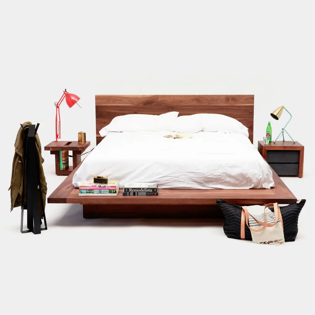 A design created to be aesthetically pleasing, but also durable and long-lasting, the SQB Bed from ARTLESS is a stylish sleep solution ready to stand up to the wear and tear of every day use. Crafted in the United States from solid wood, this bed is hand-finished with an environmentally friendly, natural oil rub, allowing the piece to age gracefully, requiring minimum maintenance and care. Structural purity and intentional detailing make this bed as functional as it is beautiful, and ready to last a lifetime. Available in neutral finish options to match most interiors, this visually stunning bed frame offers a platform design with open space underneath to store extra bedding, clothing, accessories, and more. Highlights
