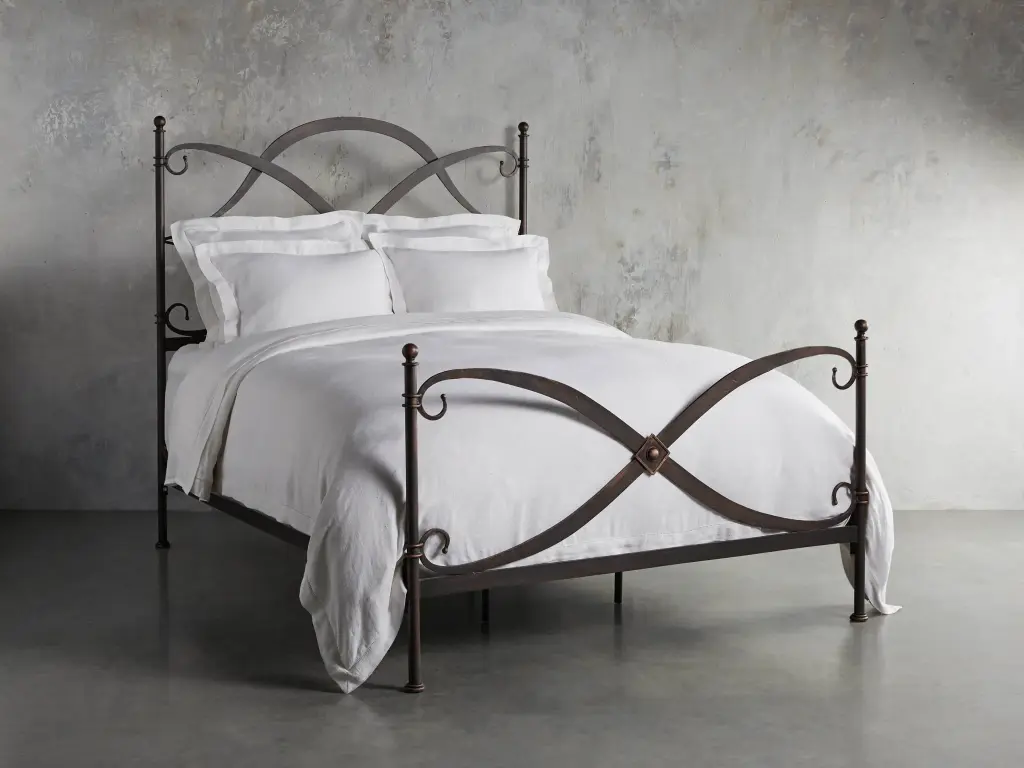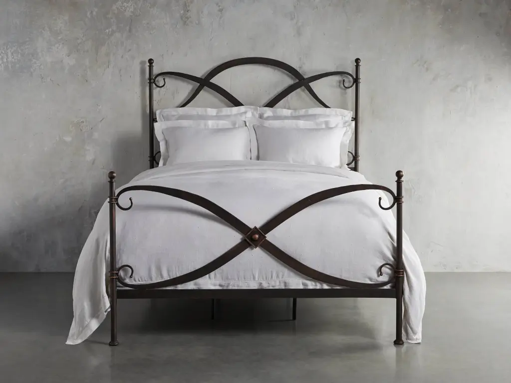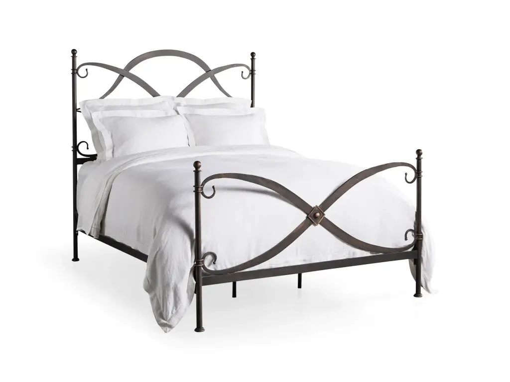 With a history of both English and French settlements inhabiting its tropical shores, the Caribbean island of St. Lucia has evolved over centuries into a sparkling fusion of French Creole culture and classic British style. Our St. Lucia Bed derives inspiration from both. Evocative of the swirling shapes found in traditional British family crest, the swooping lines of this bed’s frame infuse solid wrought iron with lightness and fluidity.