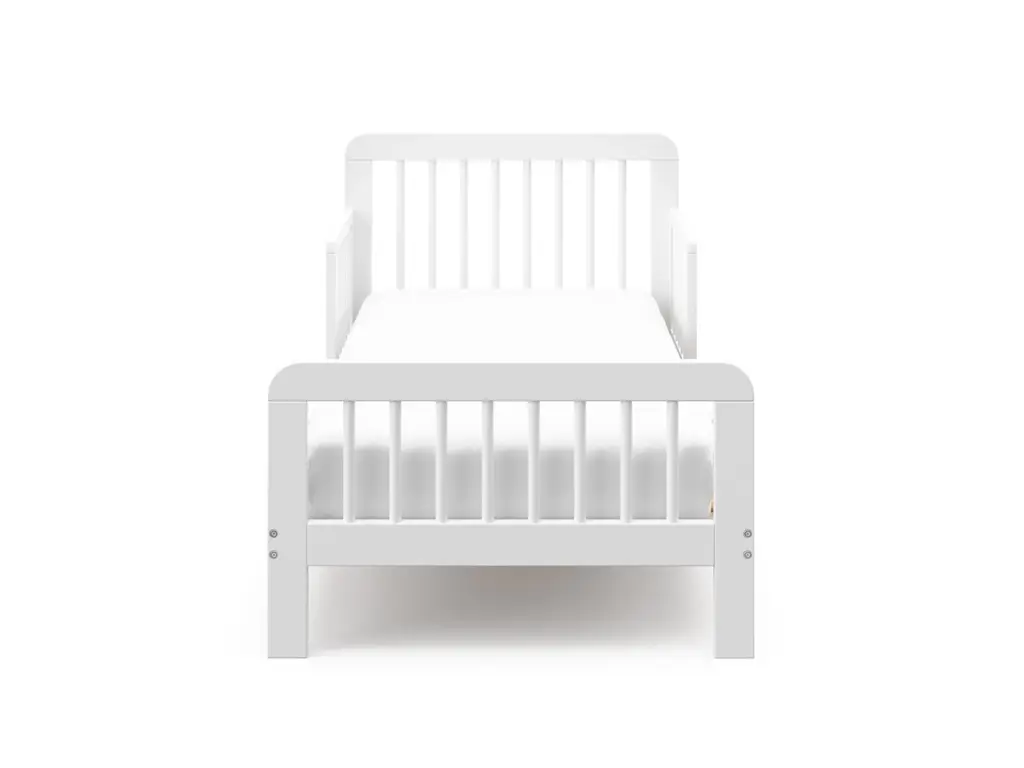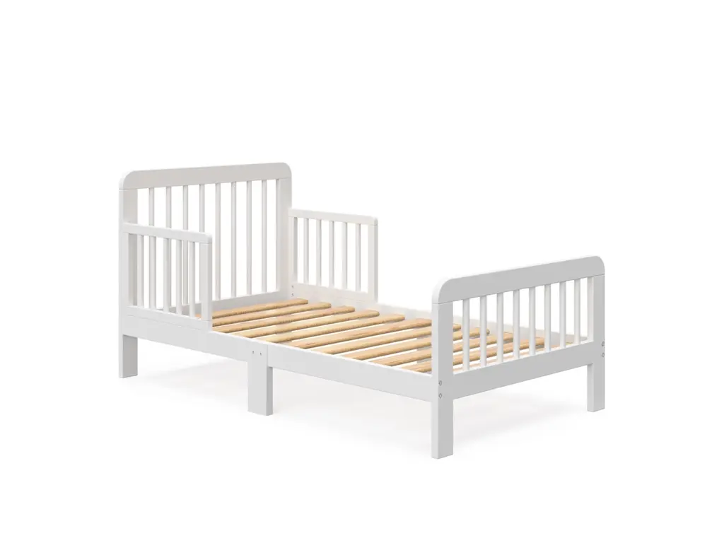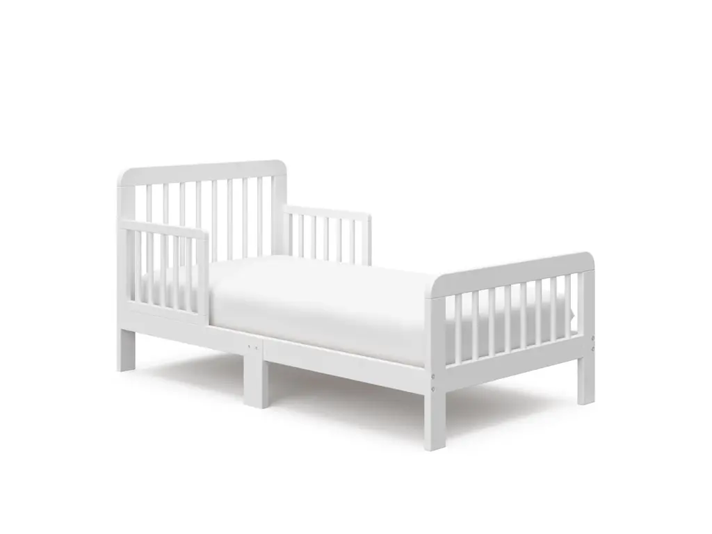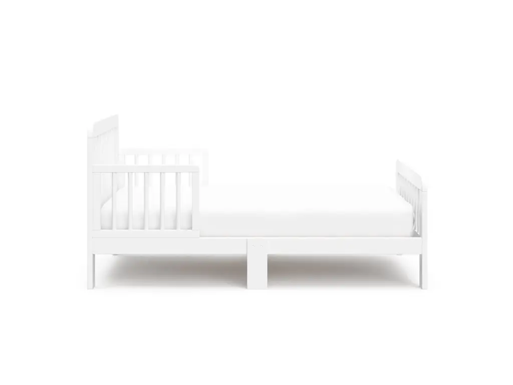 Bringing clean lines and a modern, Californian design to your kids bedroom, our Storkcraft Pasadena Toddler Bed is the perfect pick for a smooth and stylish transition from the crib to your child’s first “big kid” bed. The Pasadena is crafted from pine wood and engineered wood, and its applied finish has been tested to meet or exceed the applicable ASTM and CPSIA safety standards. The Storkcraft Pasadena Toddler Bed is JPMA Certified — meaning it’s been expert tested by third-party, accredited laboratories to meet or exceed all of the applicable category voluntary and mandatory safety standards. For your toddler’s added security, the Pasadena is equipped with toddler safety guardrails on each side of the bed. The Pasadena is designed to fit any standard full-size crib and toddler mattress (we recommend any Graco toddler mattress). Storkcraft is the proud recipient of the Parent Tested Parent Approved (PTPA) Seal of Approval for nursery and children’s bedroom furniture, the 2023 PTPA Top Product Award, and the 2018-2023 Women's Choice Award for 9 out of 10 Recommended Baby & Kids Furniture. Backed by a 1-year limited manufacturer’s warranty. Assembly required. Toddler mattress sold separately. Toddler safety guardrails included.