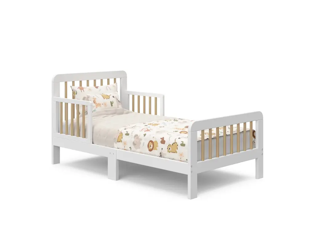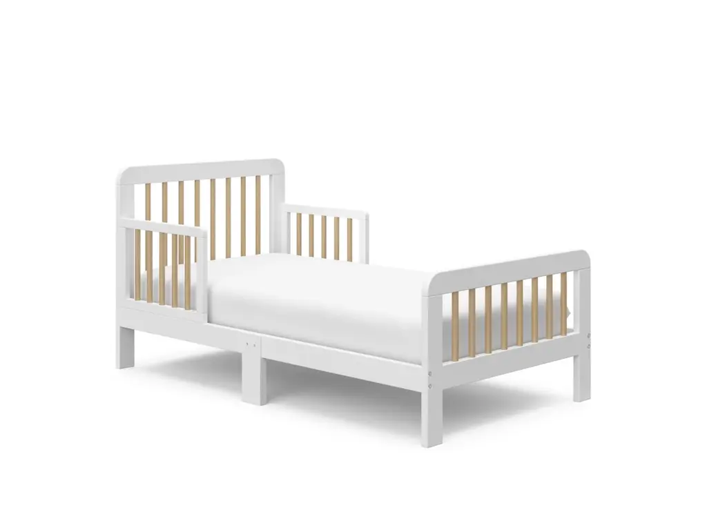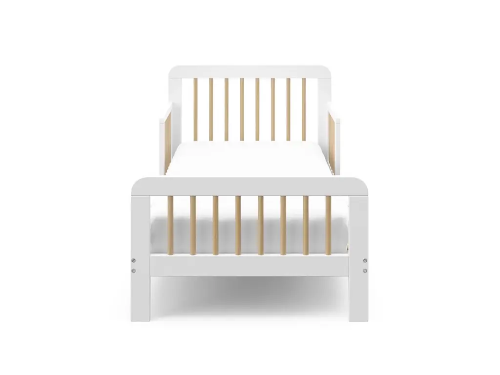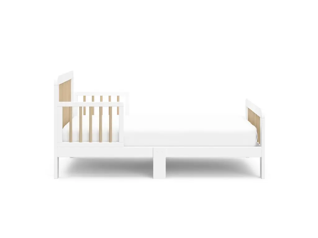 Bringing clean lines and a modern, Californian design to your kids bedroom, our Storkcraft Pasadena Toddler Bed is the perfect pick for a smooth and stylish transition from the crib to your child’s first “big kid” bed. The Pasadena is crafted from pine wood and engineered wood, and its applied finish has been tested to meet or exceed the applicable ASTM and CPSIA safety standards. The Storkcraft Pasadena Toddler Bed is JPMA Certified — meaning it’s been expert tested by third-party, accredited laboratories to meet or exceed all of the applicable category voluntary and mandatory safety standards. For your toddler’s added security, the Pasadena is equipped with toddler safety guardrails on each side of the bed. The Pasadena is designed to fit any standard full-size crib and toddler mattress (we recommend any Graco toddler mattress). Storkcraft is the proud recipient of the Parent Tested Parent Approved (PTPA) Seal of Approval for nursery and children’s bedroom furniture, the 2023 PTPA Top Product Award, and the 2018-2023 Women's Choice Award for 9 out of 10 Recommended Baby & Kids Furniture. Backed by a 1-year limited manufacturer’s warranty. Assembly required. Toddler mattress sold separately. Toddler safety guardrails included.