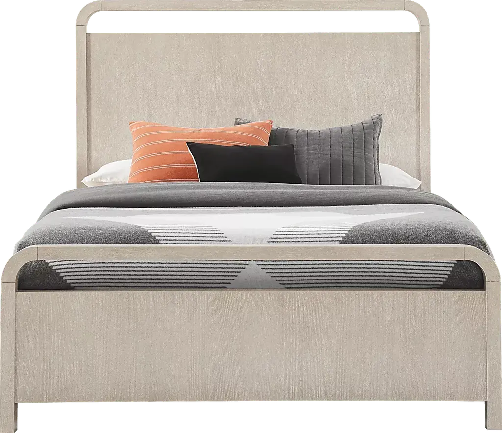 Modern wood bed with clean lines and 53.15" tall dark gray headboard. Sturdy MDF construction with wooden slats eliminates need for box spring. Storage headboard features USB and Type-C charging ports, adjustable LED light bar, and easy assembly.