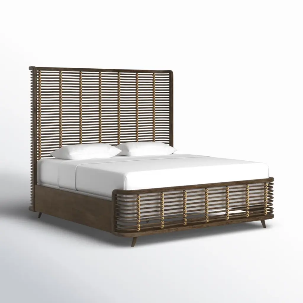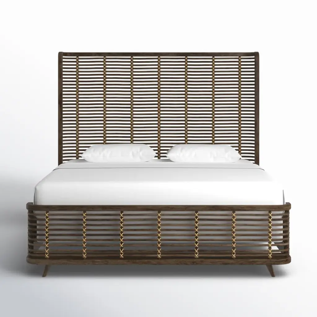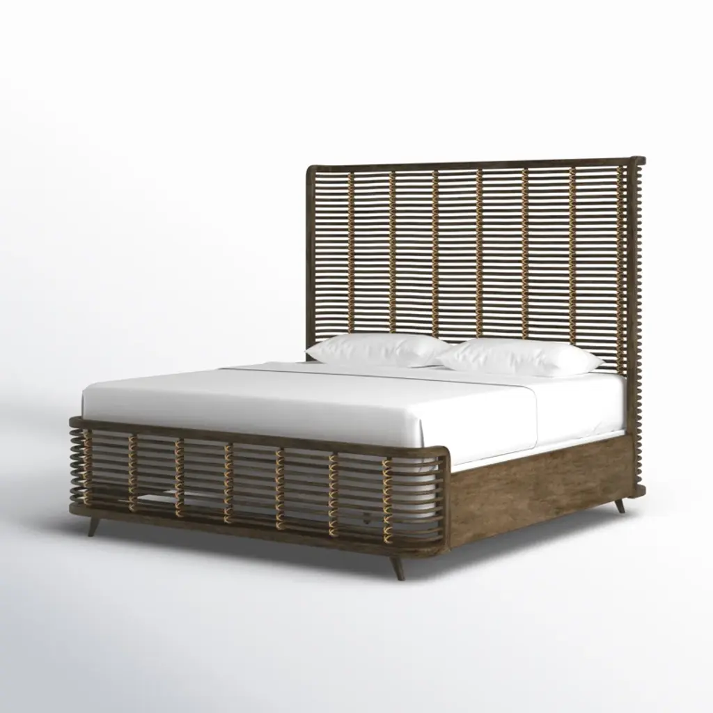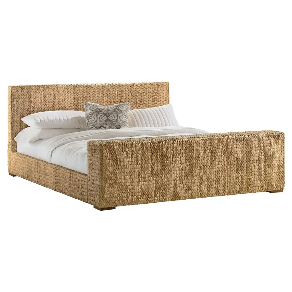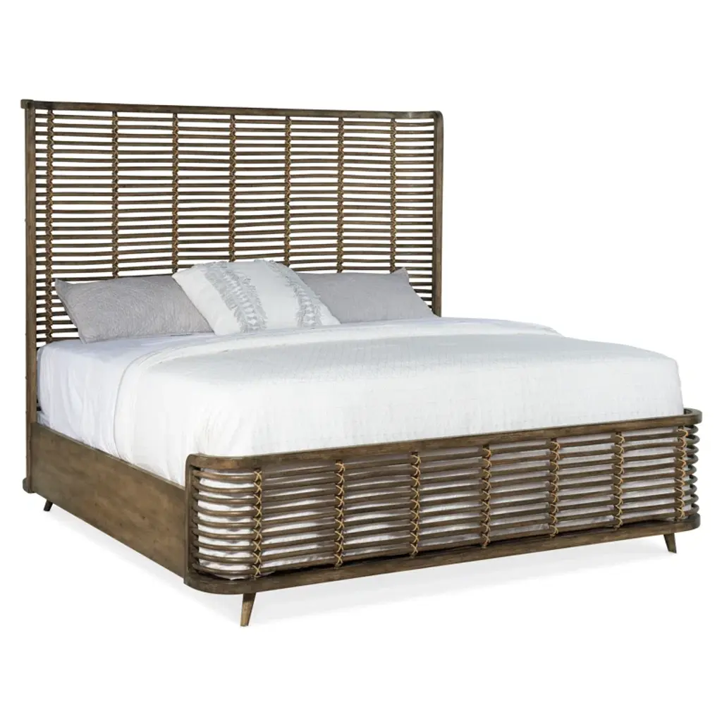 Crafted of pecan veneers, cane, raffia, and hand-tied jute rope, the Sundance King Rattan Bed epitomizes a relaxed California casual lifestyle. The signature bed is finished with a rich dynamic brown finish called Cliffside with light burnishing on the edges. Includes the headboard, footboard, and rails. Calling on inspiration from the iconic Pacific Coast Highway and the picturesque Malibu landscape, Sundance presents a clearly California casual aesthetic. Featured in Cliffside, a rich, dynamic brown finish with light burnishing on the edges, the collection combines a variety of natural materials including rattan, jute rope, stone, gypsum, bamboo, and driftwood motifs to present a sophisticated style that can instantly create a calming resort-inspired retreat in your very own home.