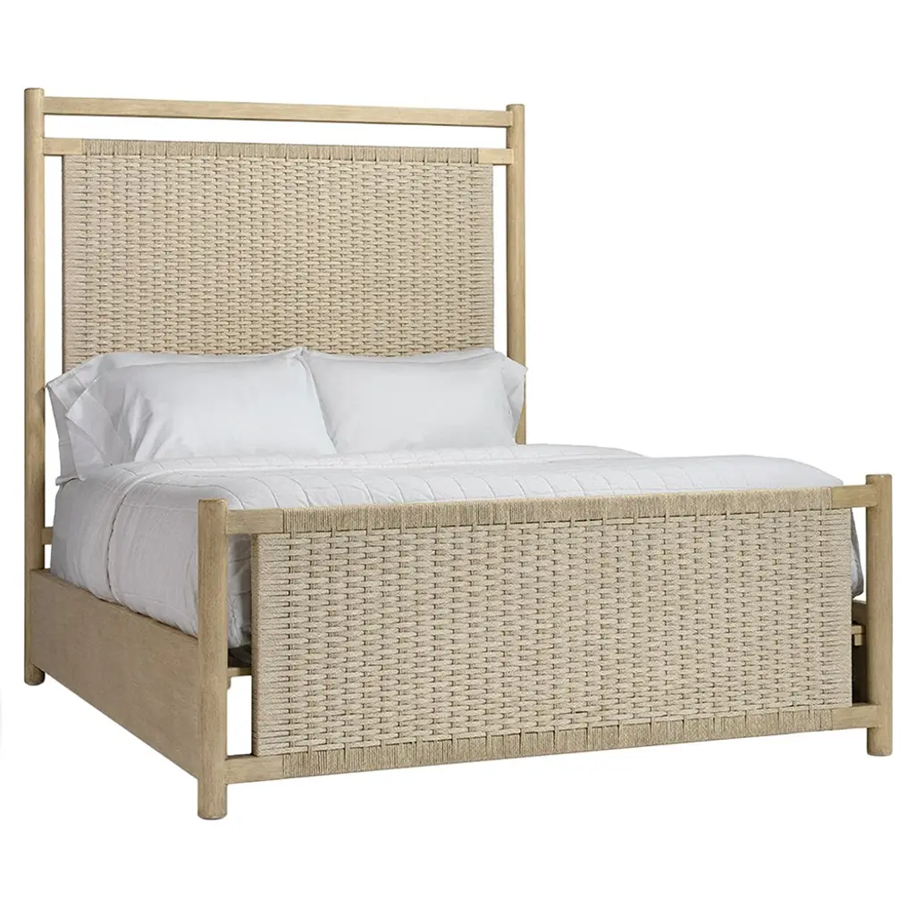 Crafted of pecan veneers, cane, raffia, and hand-tied jute rope, the Sundance King Rattan Bed epitomizes a relaxed California casual lifestyle. The signature bed is finished with a rich dynamic brown finish called Cliffside with light burnishing on the edges. Includes the headboard, footboard, and rails. Calling on inspiration from the iconic Pacific Coast Highway and the picturesque Malibu landscape, Sundance presents a clearly California casual aesthetic. Featured in Cliffside, a rich, dynamic brown finish with light burnishing on the edges, the collection combines a variety of natural materials including rattan, jute rope, stone, gypsum, bamboo, and driftwood motifs to present a sophisticated style that can instantly create a calming resort-inspired retreat in your very own home.