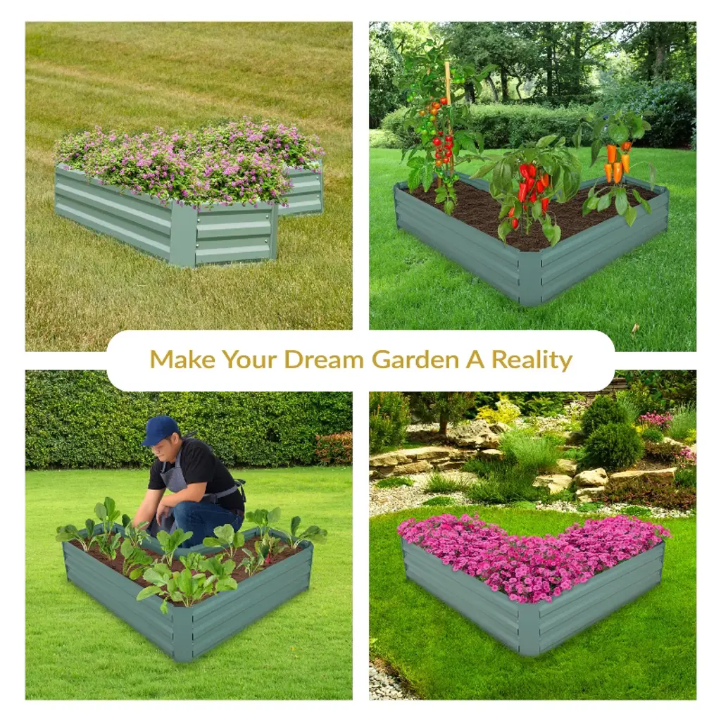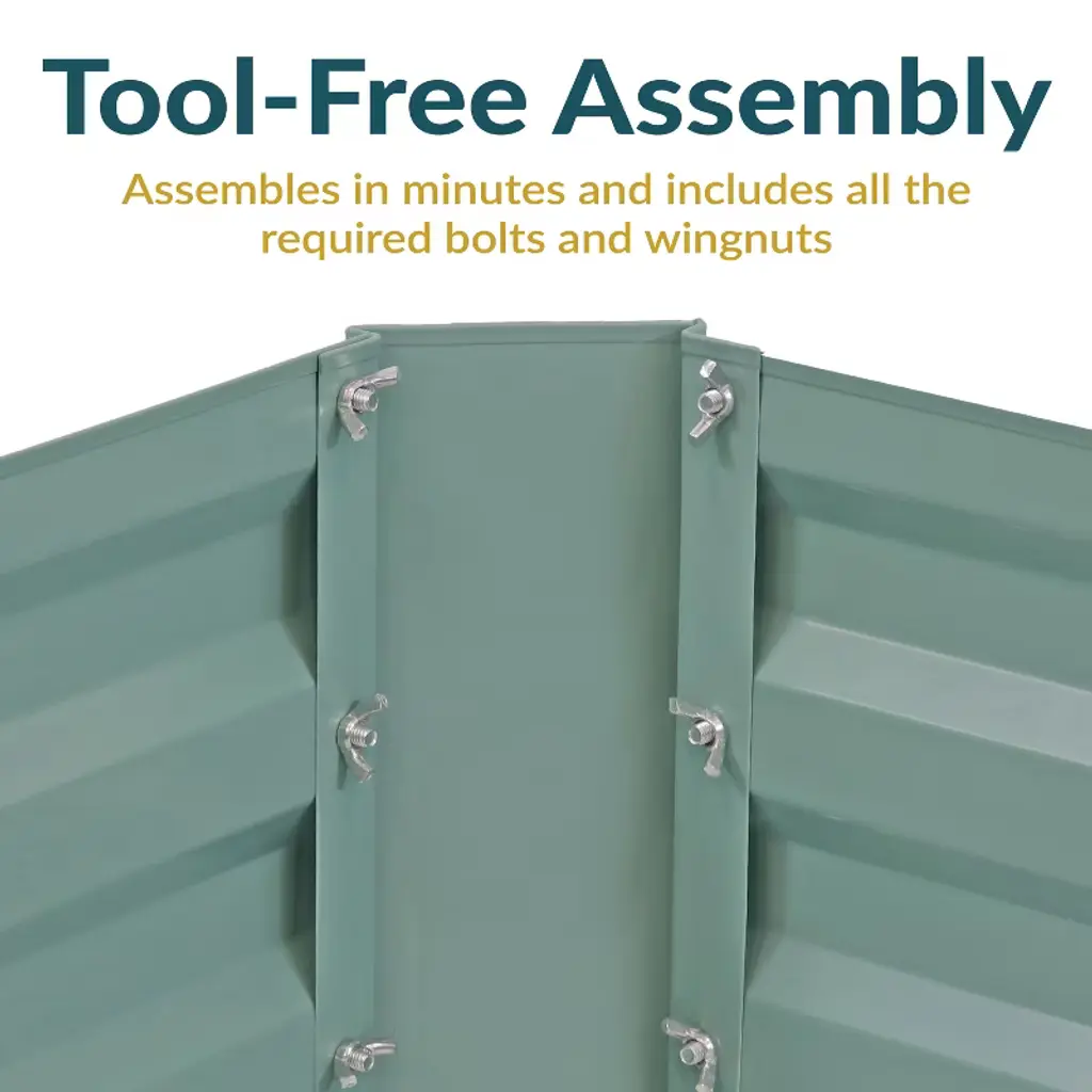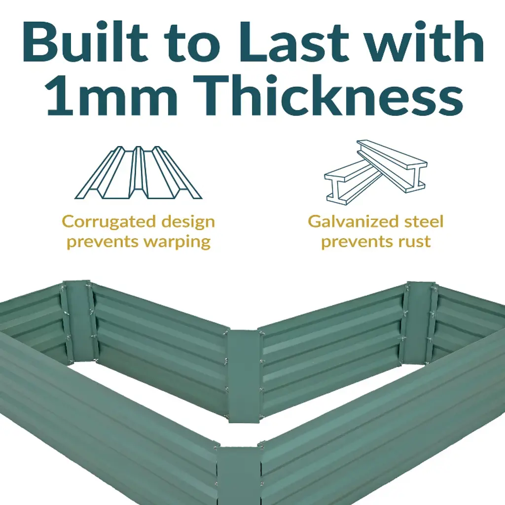 Sunnydaze Galvanized Steel L-shaped Raised Garden Bed - Green