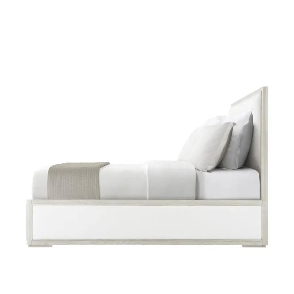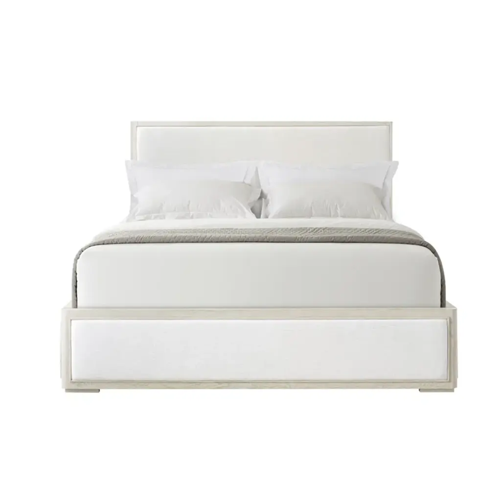 The refined silhouette of the Surrey Upholstery Bed offers a contemporary take on the crisp forms of the early 19th century. Hand-finished in oak wood gracefully outlines generous upholstery.