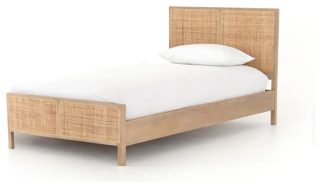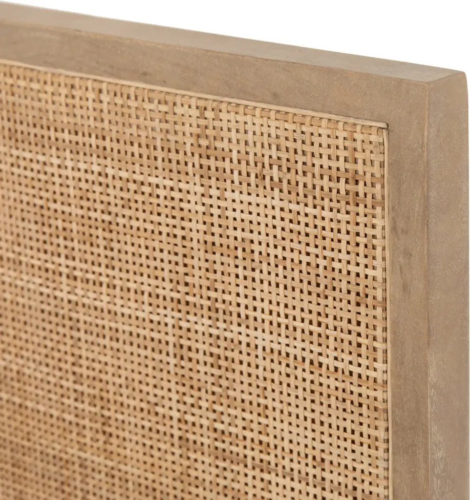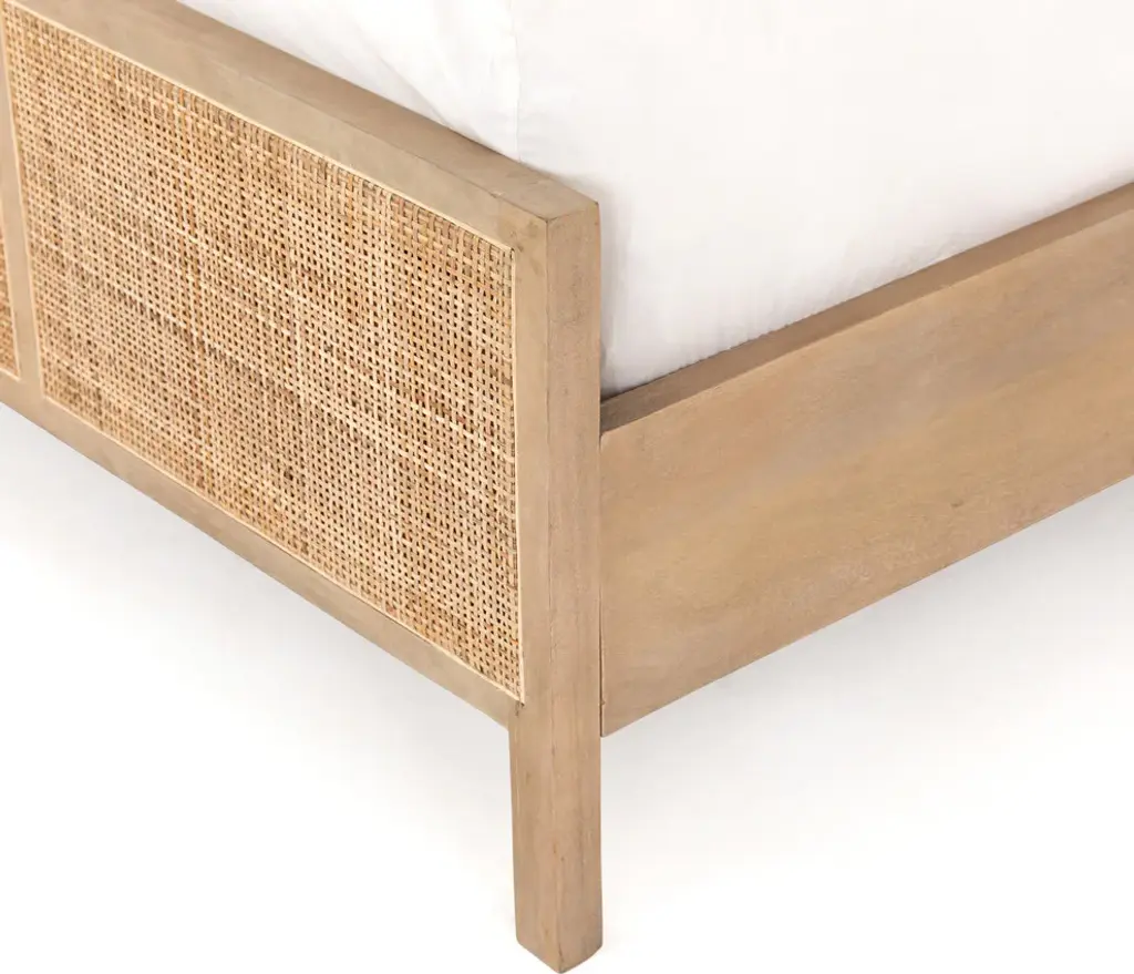 Natural mango frames inset woven cane, for a light, textural look with fresh organic allure. Two-panel head and foot boards add a detail-rich touch. This bed is not compatible with an adjustable mattress.