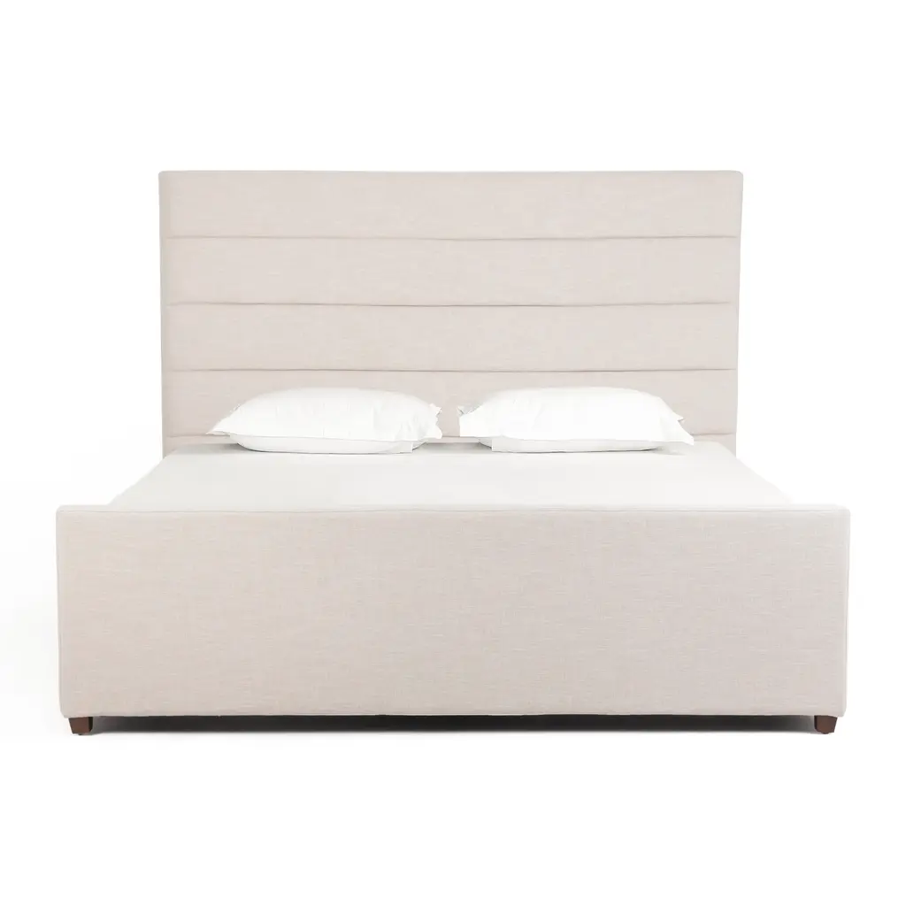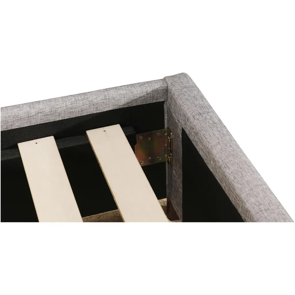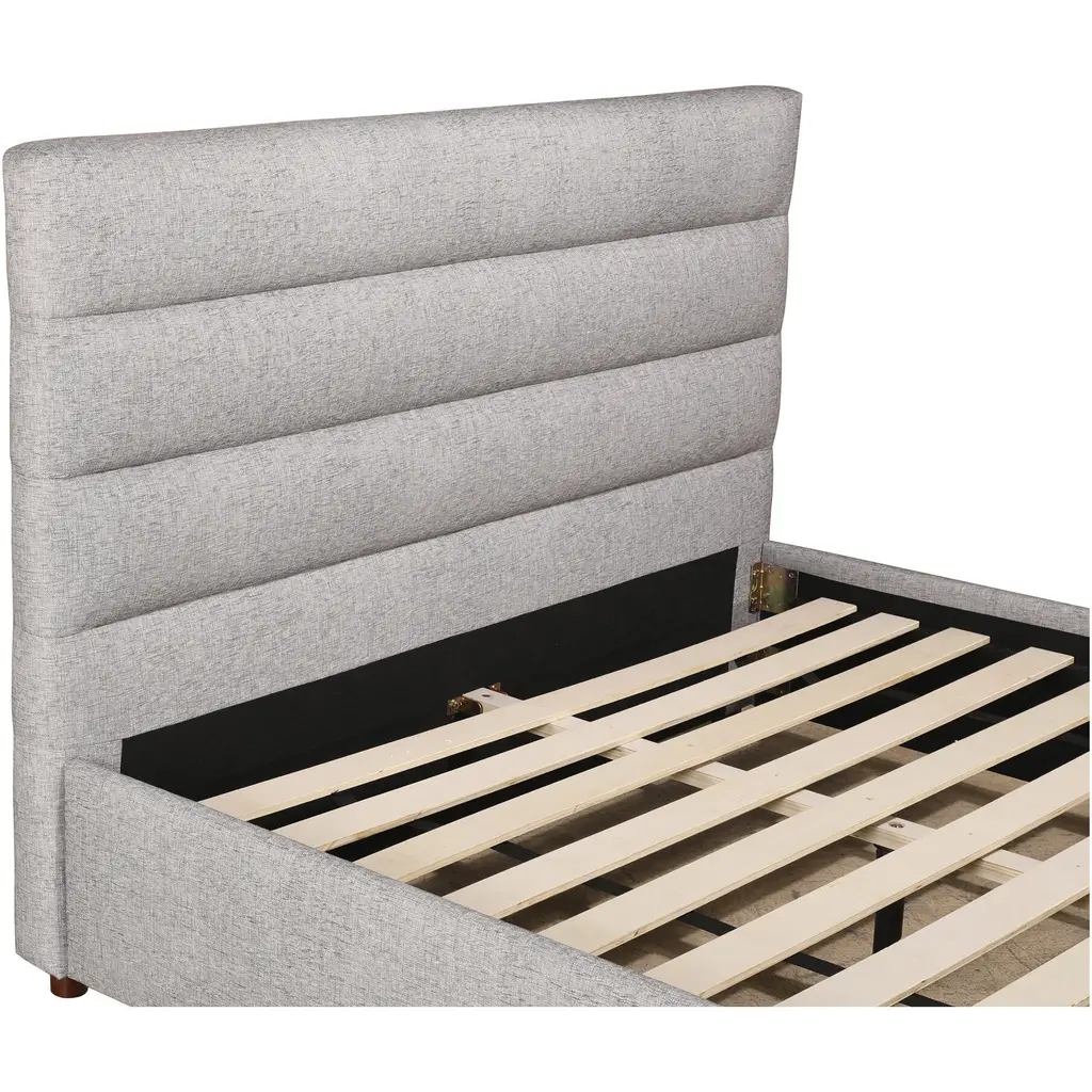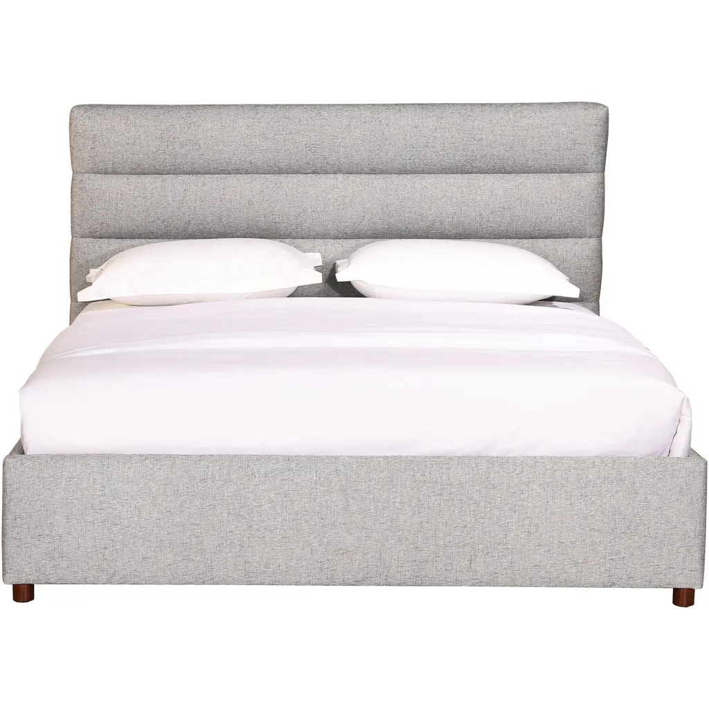 Modern and minimal. The Takio bed is softly upholstered in light grey polyester fabric for a soothing feel before you drift off to dreamland. Lightly stuffed and tufted on top of a solid wood construction for ultimate comfort.