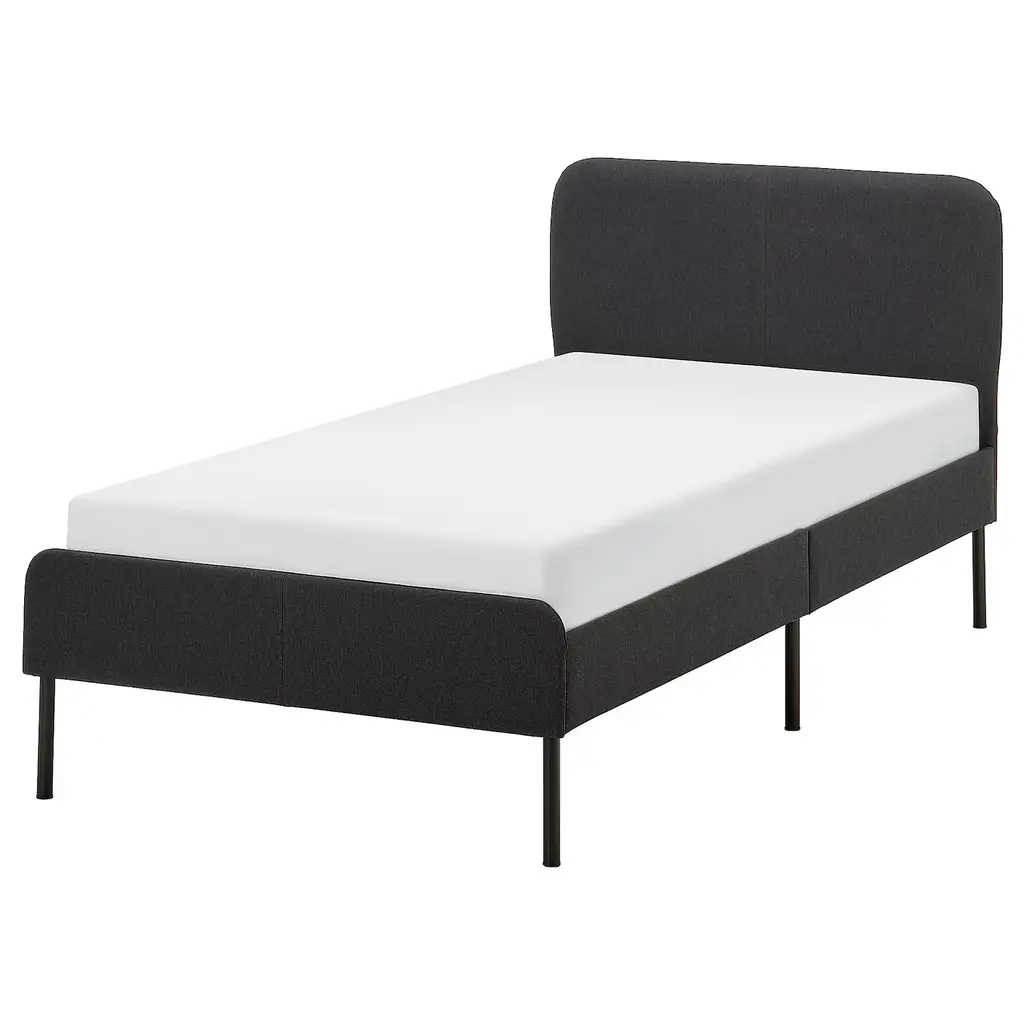 TÄLLÅSEN Upholstered bed frame - Kulsta gray-green/Luröy Queen. The clean and sturdy design with several well-thought-out details gives TÄLLÅSEN upholstered bed frame a modern look – easy to combine with other bedroom furniture. Center support beam included.