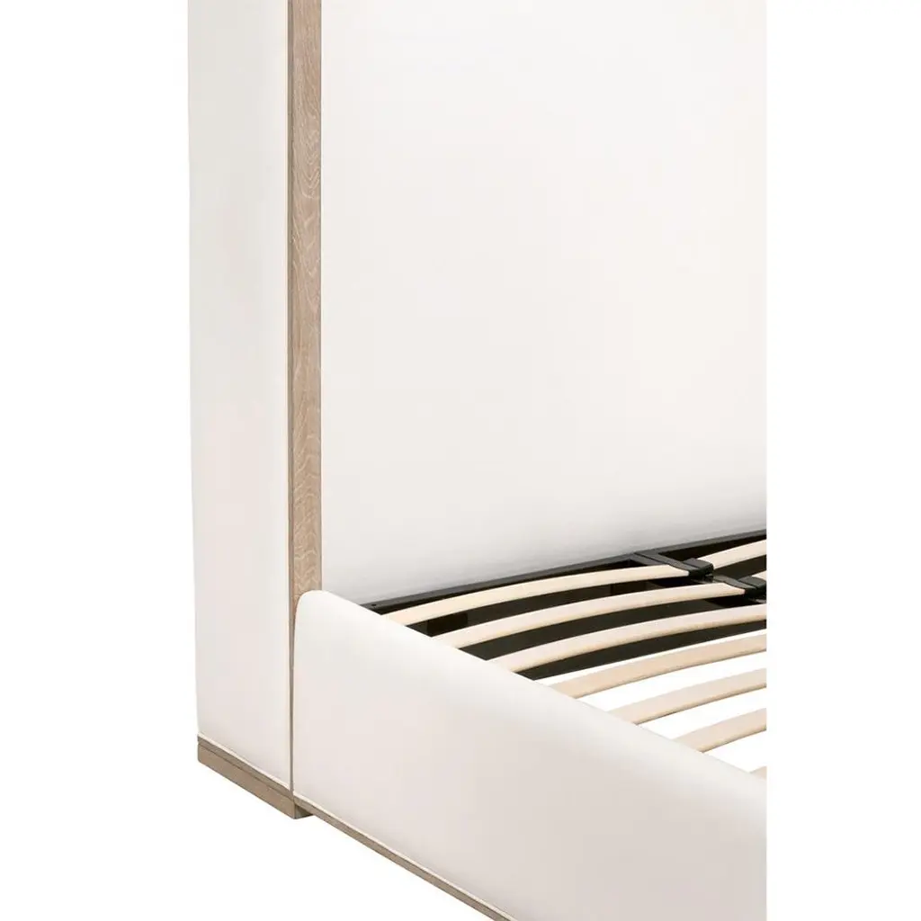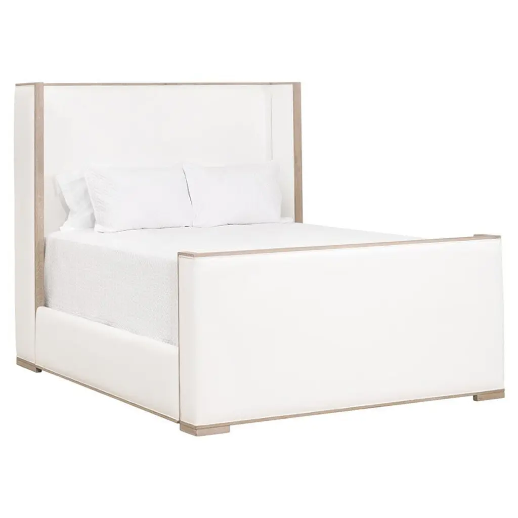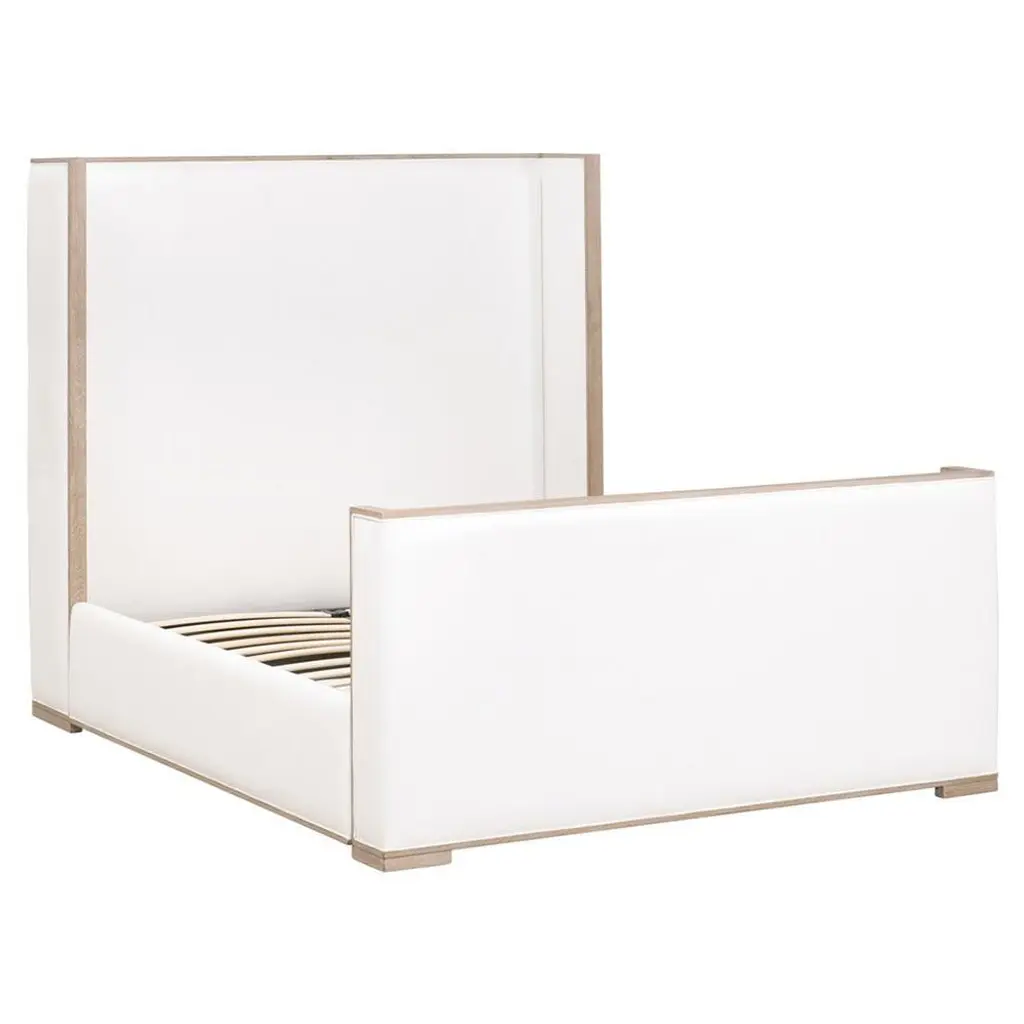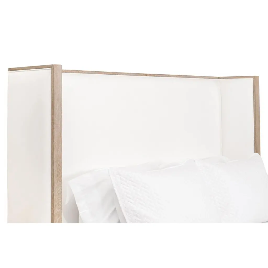 Tana Modern Classic White Performance Natural Grey Oak Wingback Bed - Queen