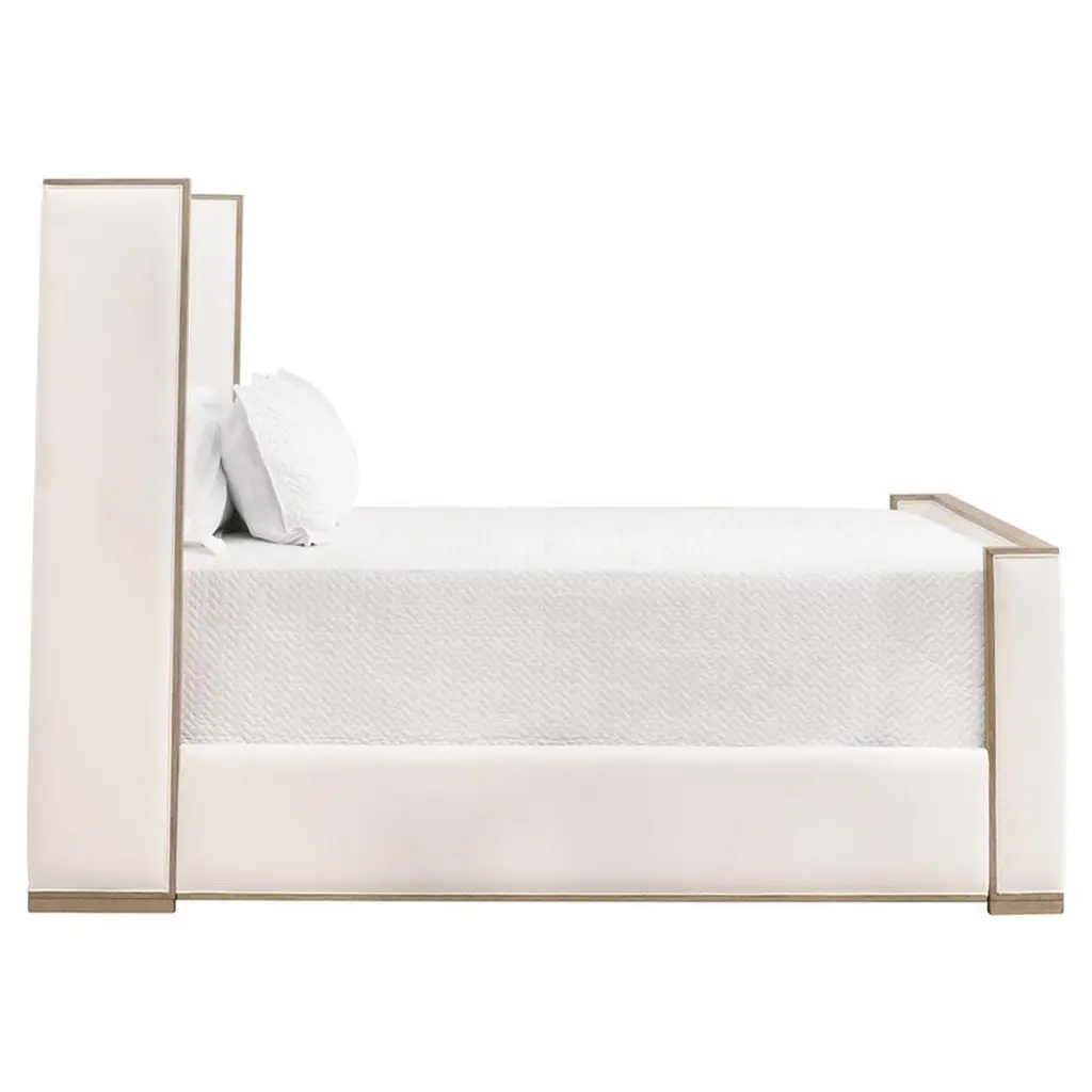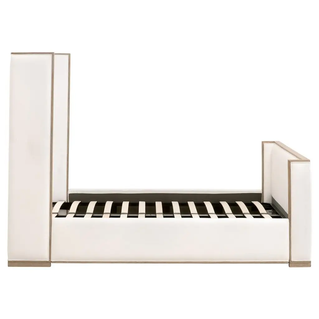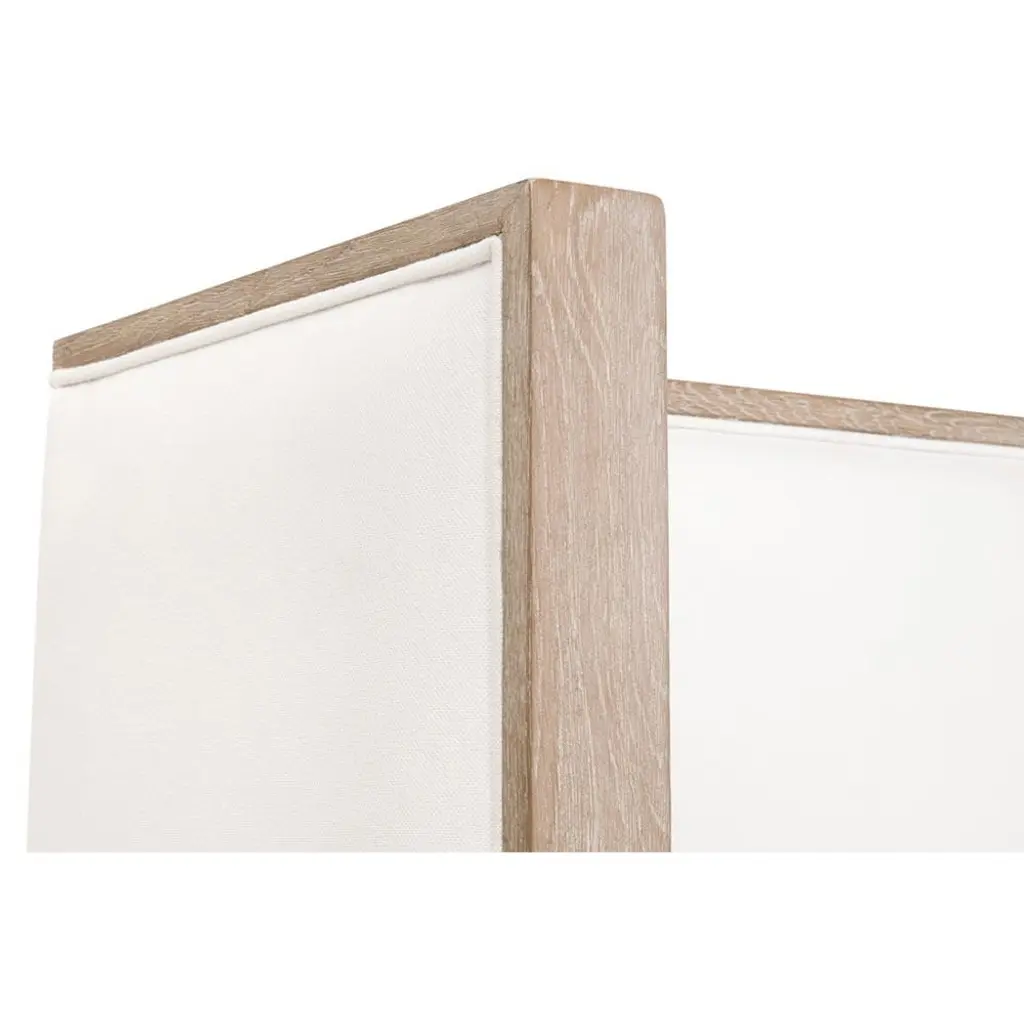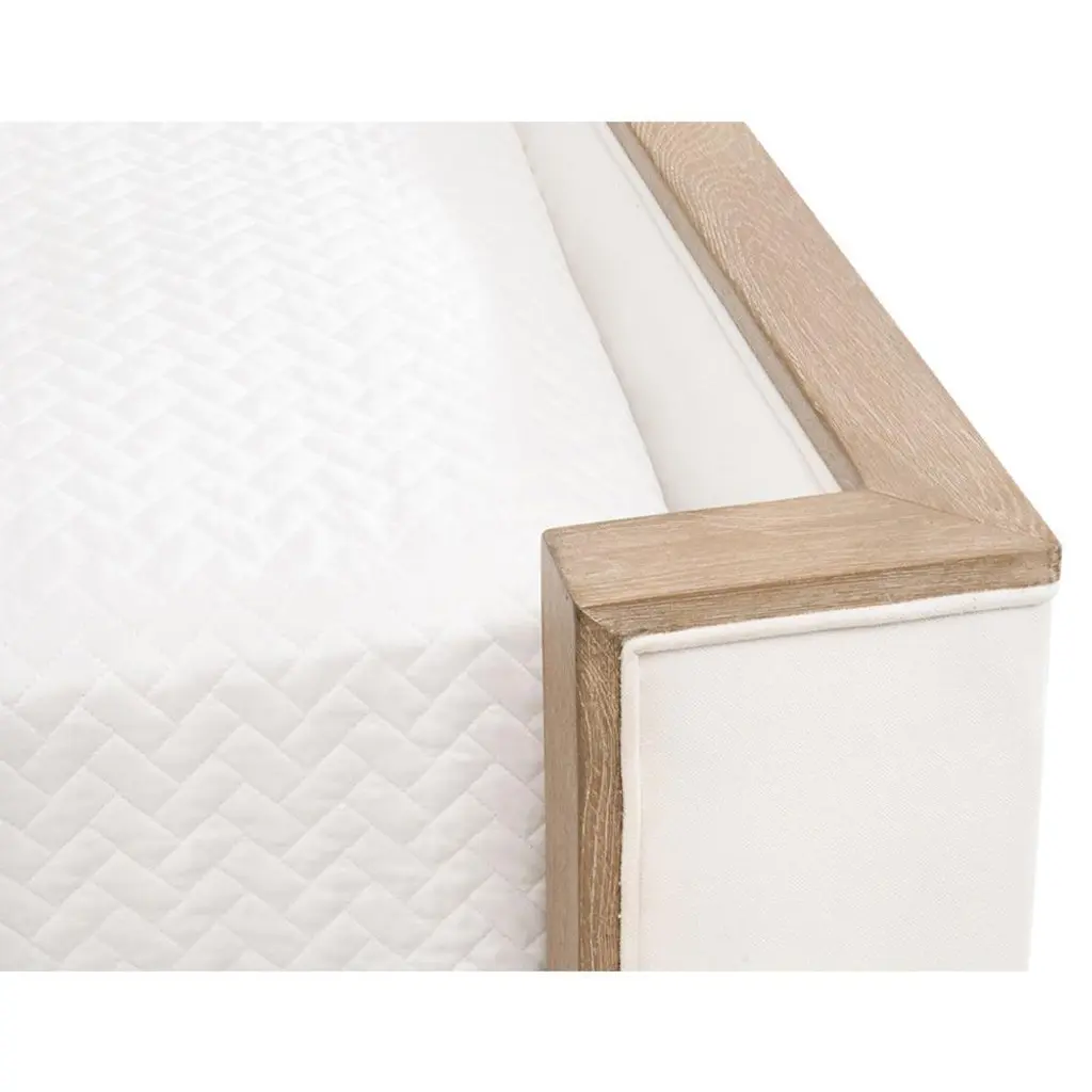 Tana Modern Classic White Performance Natural Grey Oak Wingback Bed - Queen