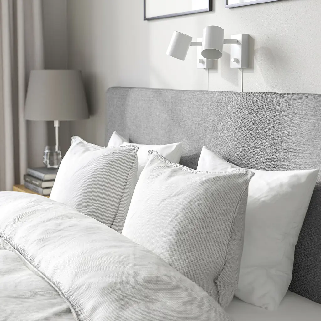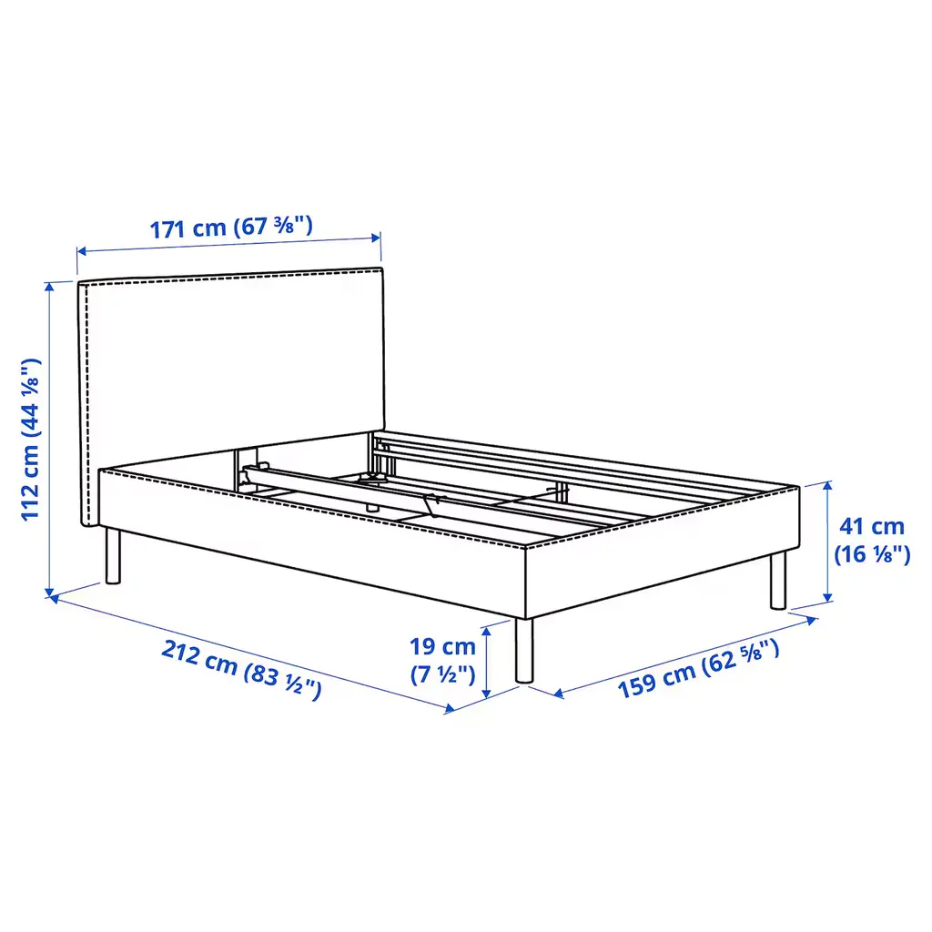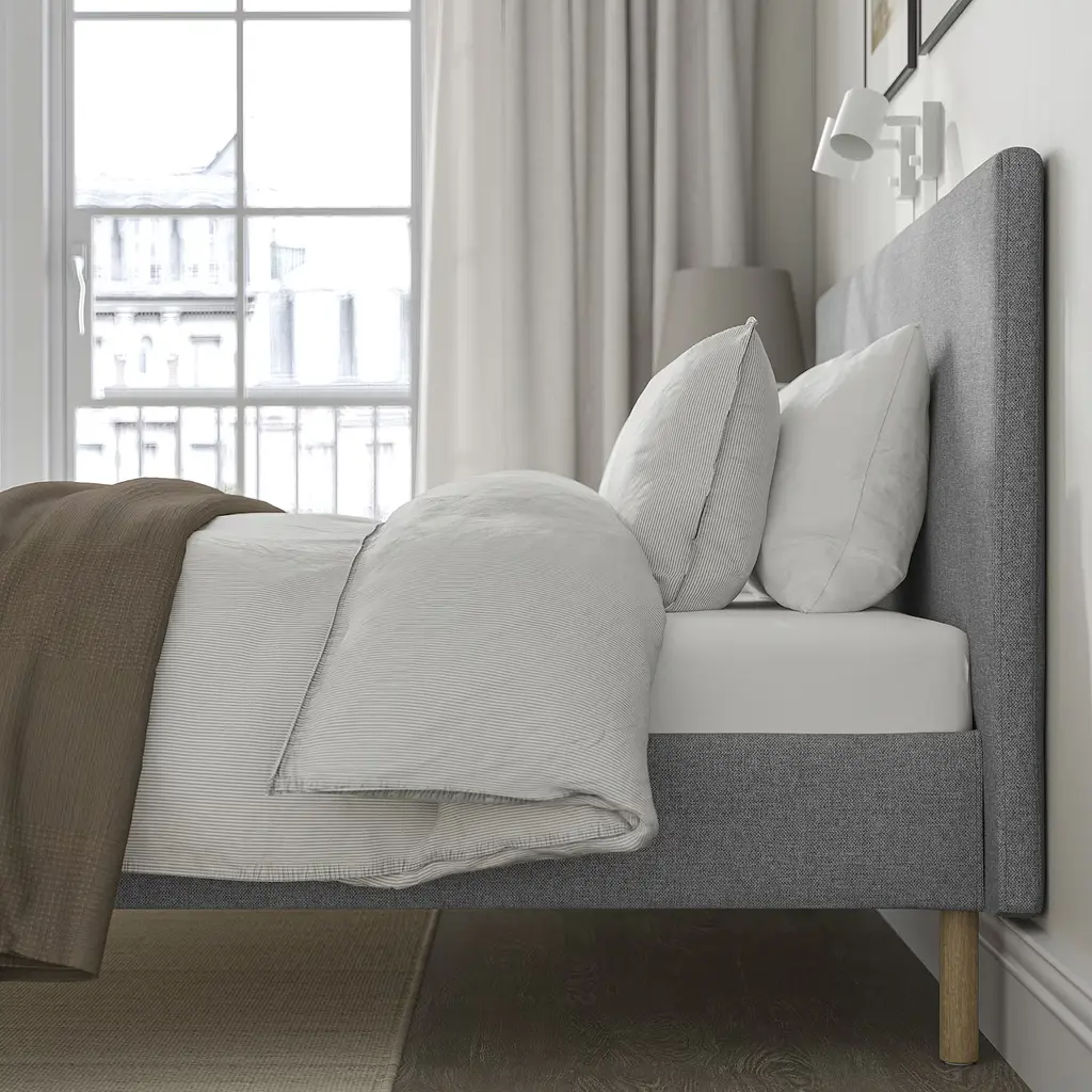 TÄRNKULLEN Upholstered bed frame - Tibbleby beige/gray/Luröy Queen. The entire cover is removable and machine washable, making your bed easy to keep clean and use for a long time. The cover comes in two pieces, so it’s easy to remove and put back on. The sturdy oak legs complete the look.