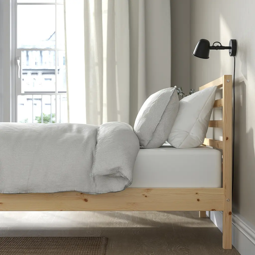 TARVA Bed frame - pine/Luröy Twin. If you oil, wax, lacquer or stain the untreated solid wood surface it will be more durable and easy to care for. The hard-wearing solid pine has natural variations in grain, color and texture, giving every piece a unique look.