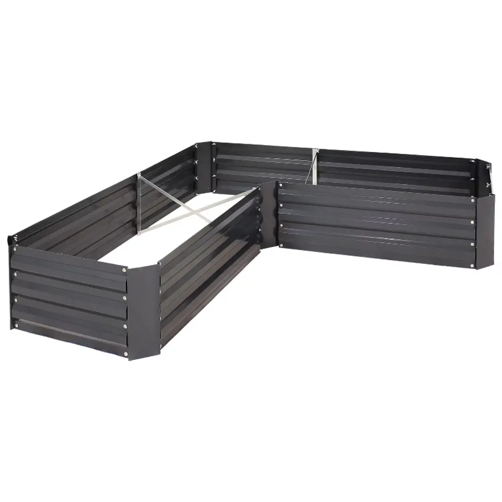 The perfect raised garden bed for fitting into a corner, or creating unique landscaping areas and details to change the look and flow of your garden. If you''d like an out-of-the-way garden, tucking this raised bed into a corner of your yard is a great use of space. For easier harvesting, try to leave about 3 feet of space on all sides so you can reach your garden from all directions. The L-Shape also provides opportunities to create grand entrances, and secluded patio areas. Imagine how an L-shaped garden on either side of your back-patio door would create a flower or vegetable lined pathway to your yard, and make it super-easy to run out and pick veggies for a salad. A single L-shaped garden set slightly away from the house, and planted with tall flowers like snapdragons, zinnias or sunflowers could create a private patio area with its own entrance. Tool-free snap-lock brackets make it simple to installA solid choice for durability and function. Reinforced with bracing boards to prevent frost push-out. If you like an organized garden, you''ll appreciate how the bracing boards divide your garden into five separate planting areas. The 11-inch-high stacked side boards give you lots of depth to grow both underground veggies like onions, garlic and carrots, as well as tall plants like tomatoes, corn or sunflowers. One L-Shaped garden bed provides 80 square feet of planting area.